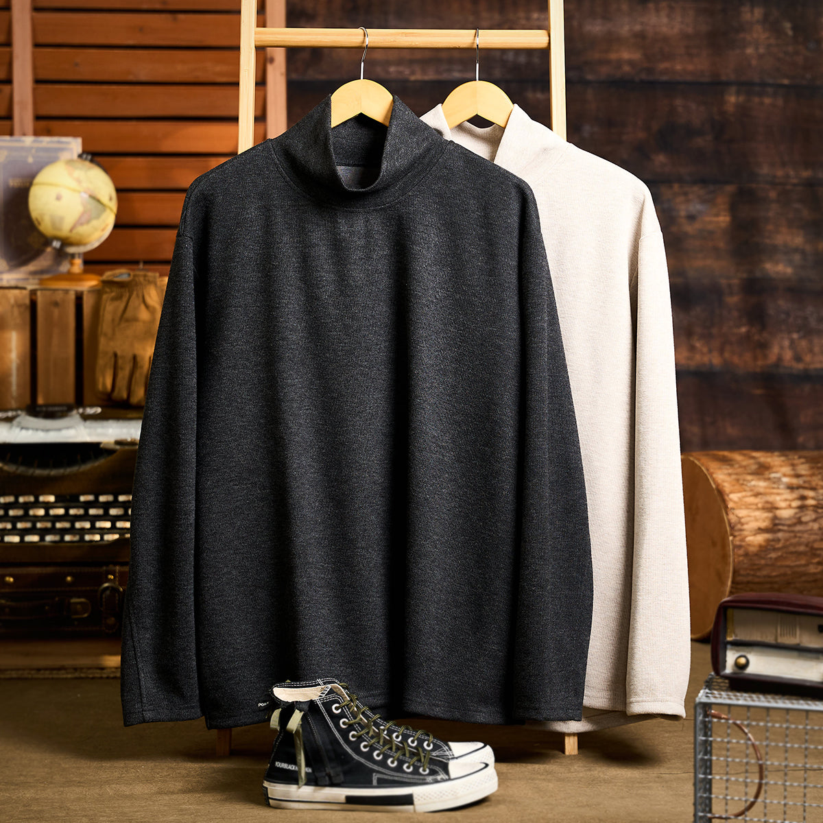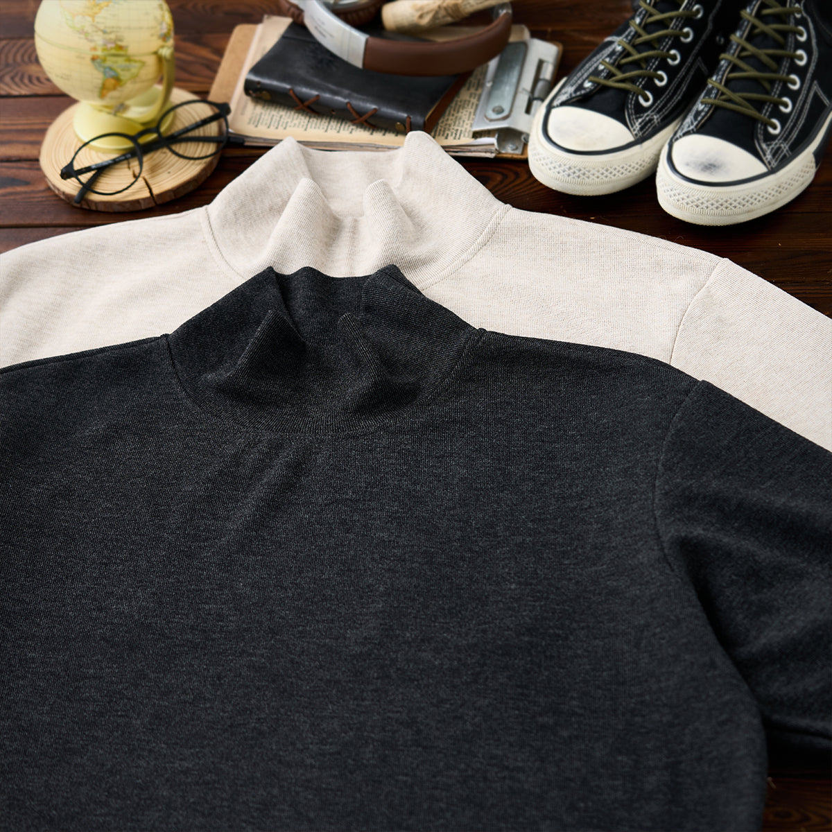 미세 기모 울 혼방 뒷면 스티치 라인 하이넥 스웨트셔츠