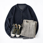 체크 셔츠 위에 가디건을 겹쳐 입은 듯한 페이크 레이어드 스타일로, 한 벌만으로 입체적인 스타일링을 즐길 수 있는 아이템입니다.
