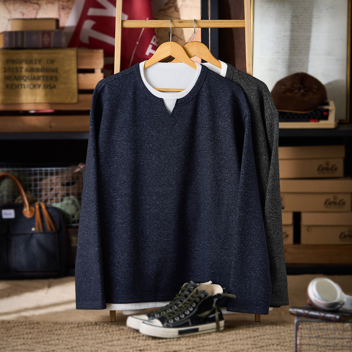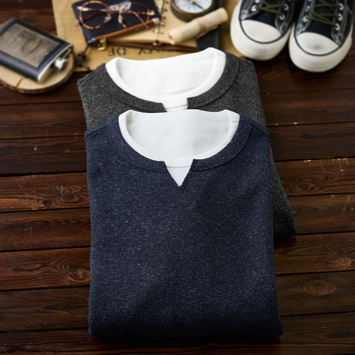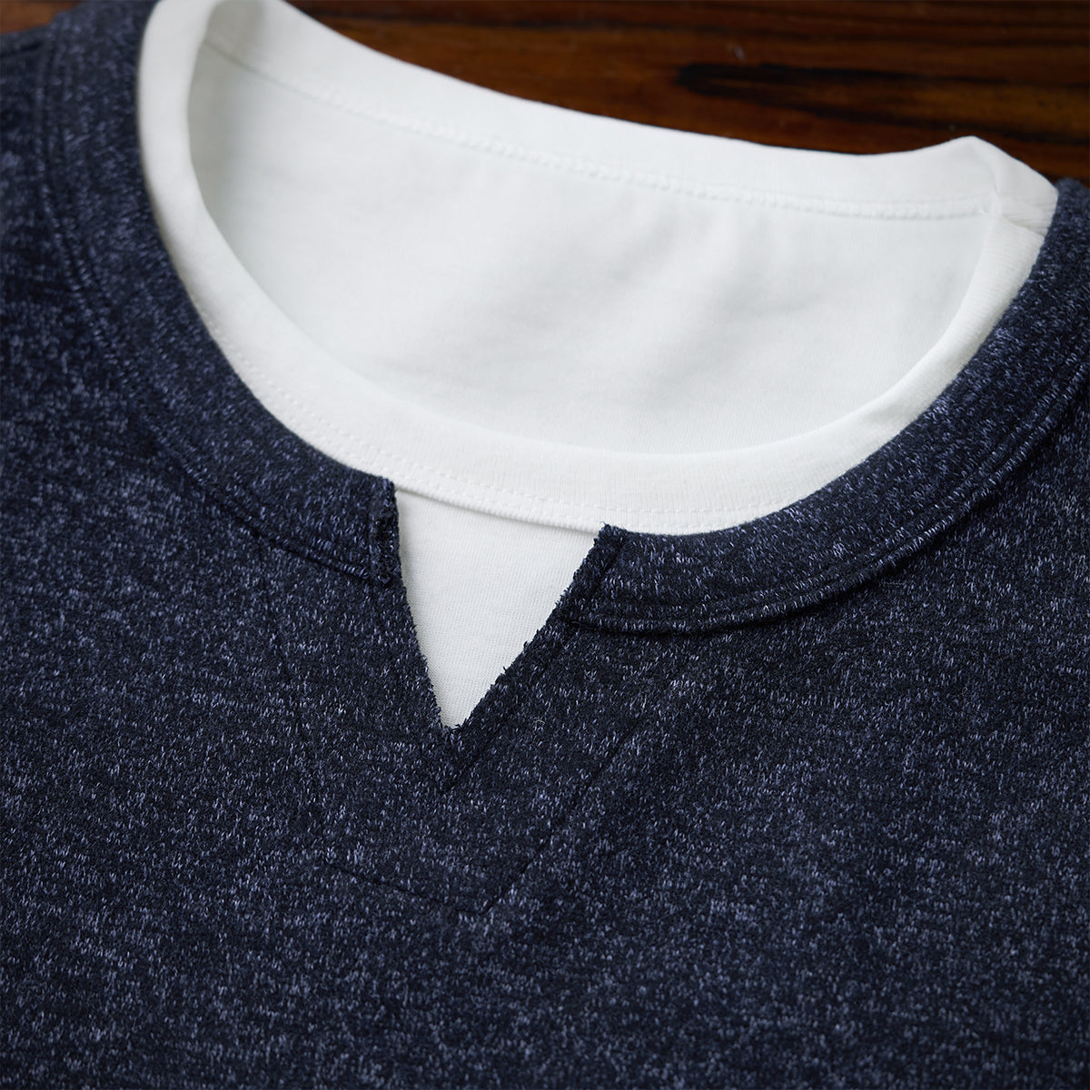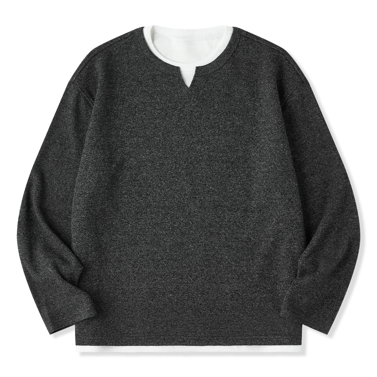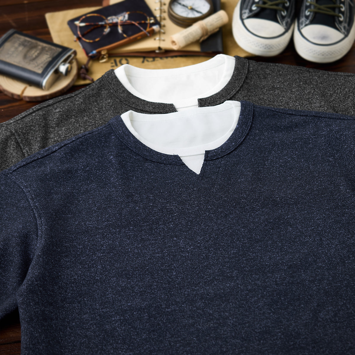 Cleanfit V넥 × 크루넥 페이크 레이어드 멜란지 스웨트셔츠