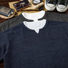 V넥 × 크루넥 페이크 레이어드 디자인으로, 목 부분에서 살짝 드러나는 인너 디테일이 심플한 룩에 깊이 있는 포인트를 더합니다.