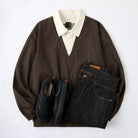 화이트 셔츠를 겹쳐 입은 듯한 페이크 레이어드 디자인으로, 셔츠의 깔끔함과 스웨트의 캐주얼함이 조화로운 풀오버입니다.