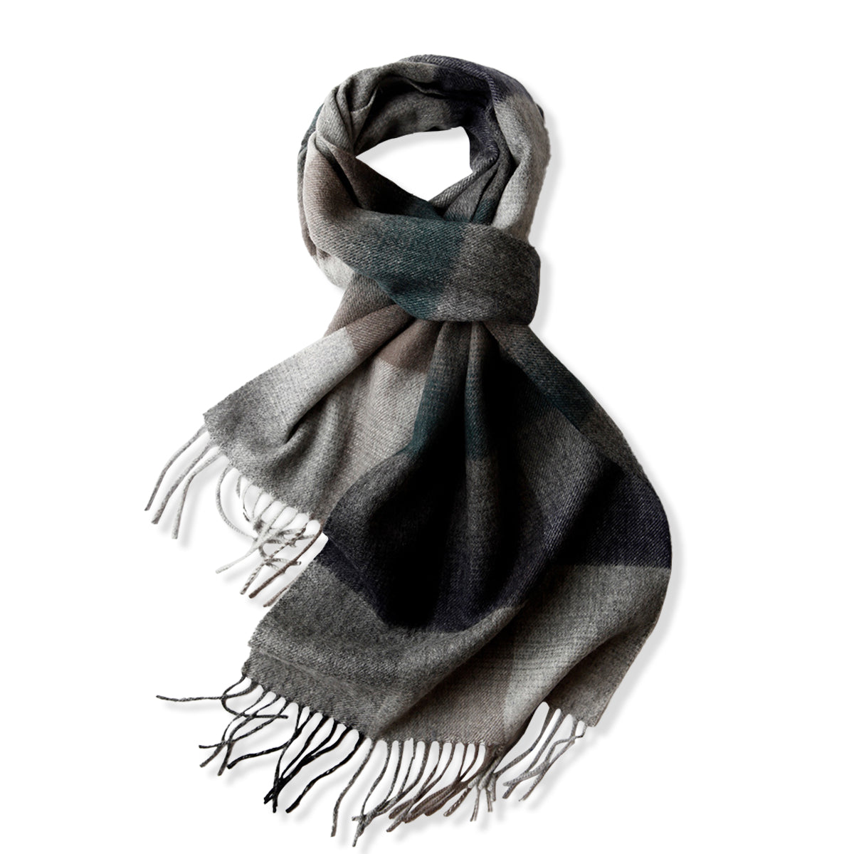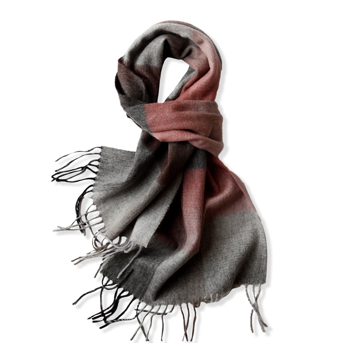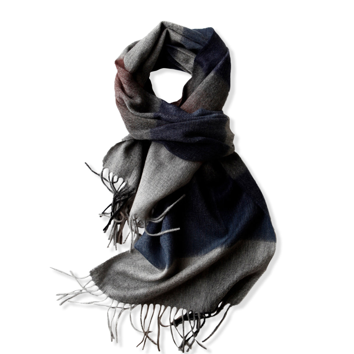 그라데이션 체크 패턴 캐시미어×울 프린지 머플러