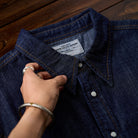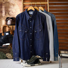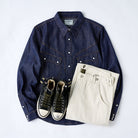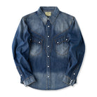 화이트 애게이트 단추 워싱 가공 웨스턴 데님 셔츠