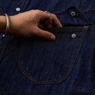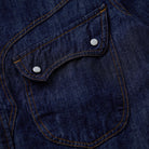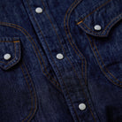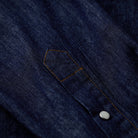 이 제품은 파도 모양의 곡선 플랩 포켓과 어깨에서 가슴으로 이어지는 스티치로 웨스턴 무드를 살렸으며, 스냅 버튼을 사용해 실용성과 디자인 완성도를 높였습니다.