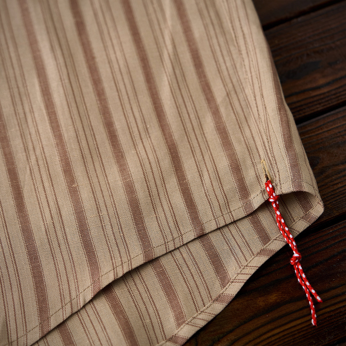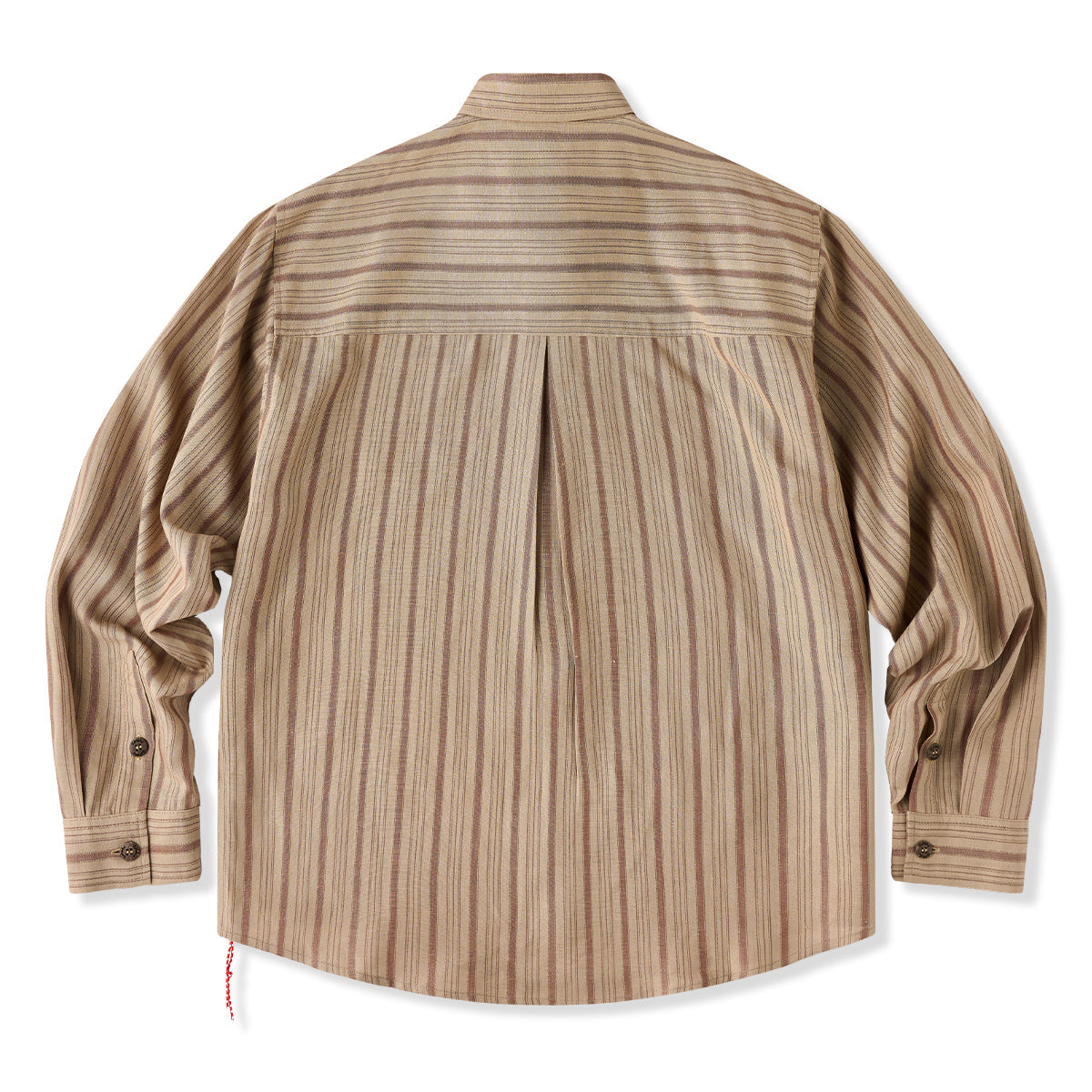 린넨 혼방 빨간 매듭 끈 레트로 멀티 스트라이프 긴팔 셔츠