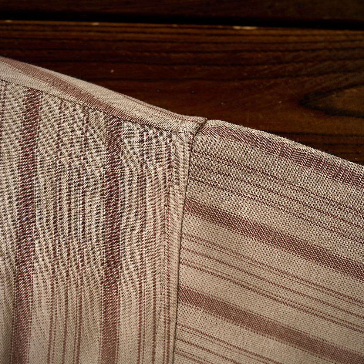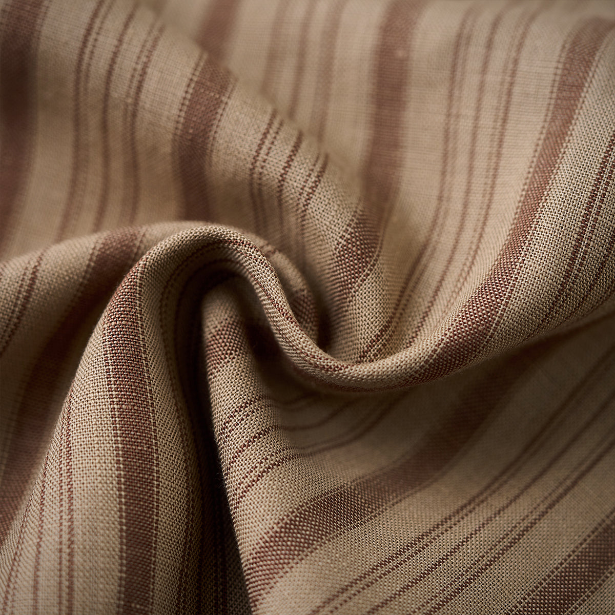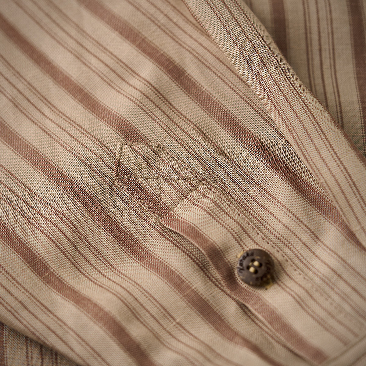 카키 계열의 스트라이프 패턴이 클래식하고 빈티지한 무드를 연출하며, 서로 다른 두께의 스트라이프가 불규칙하게 배치되어 시각적인 리듬감을 더합니다.
