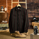 【사전예약】유즈드 가공 버튼 레트로 스트라이프 자카드 워크 셔츠