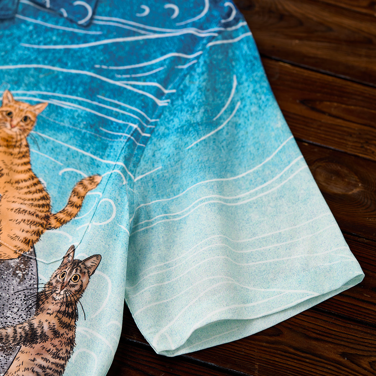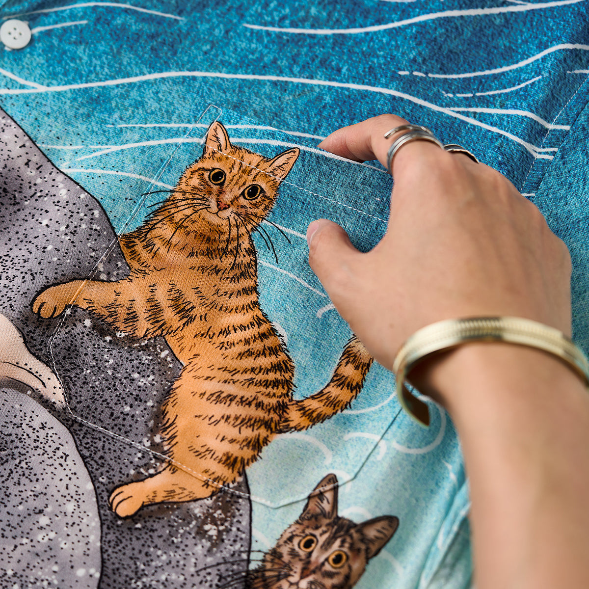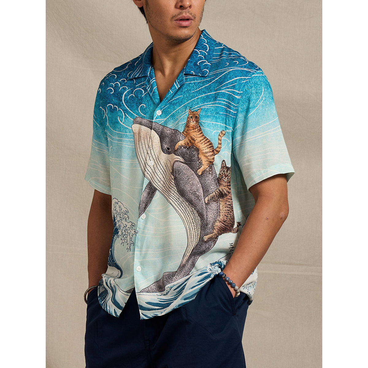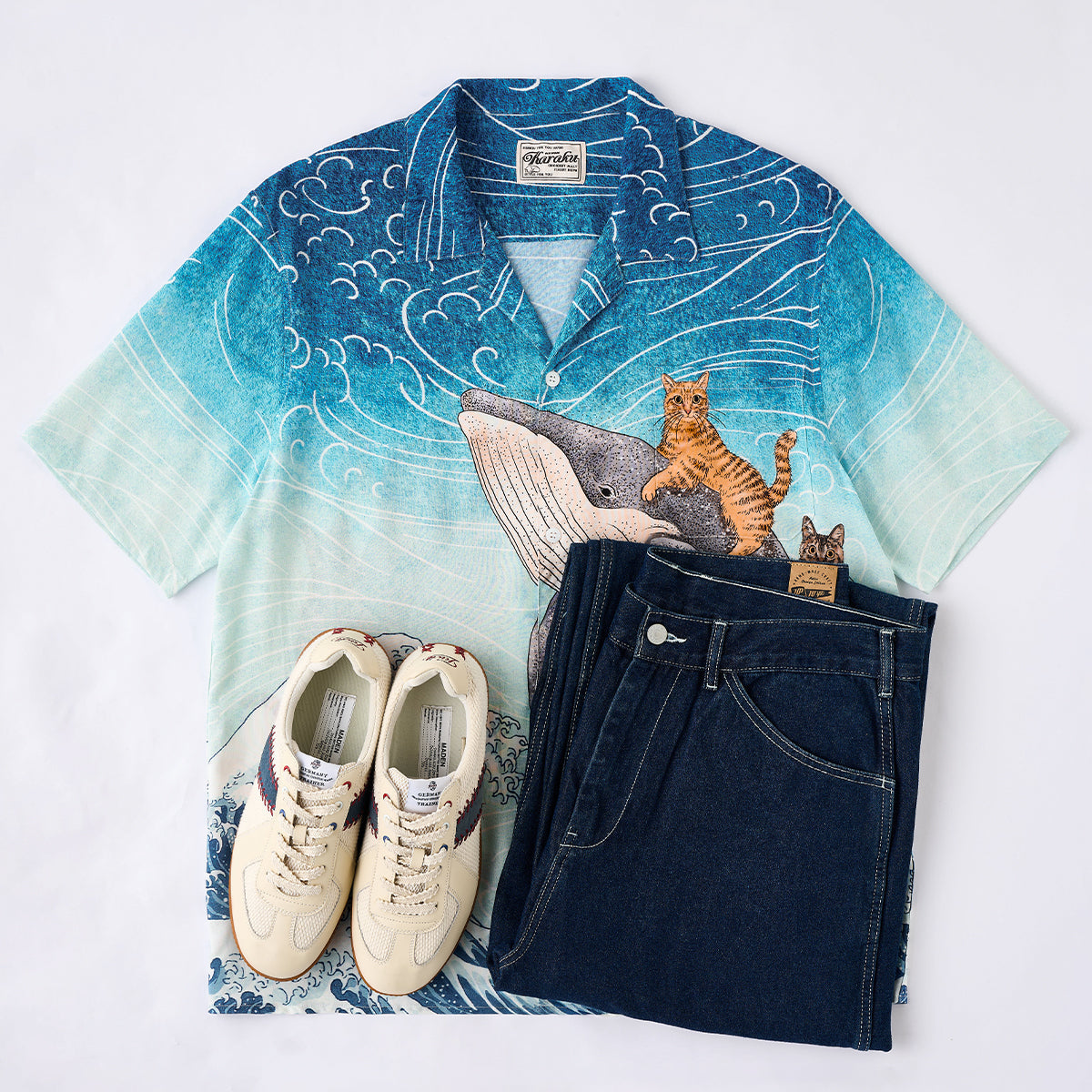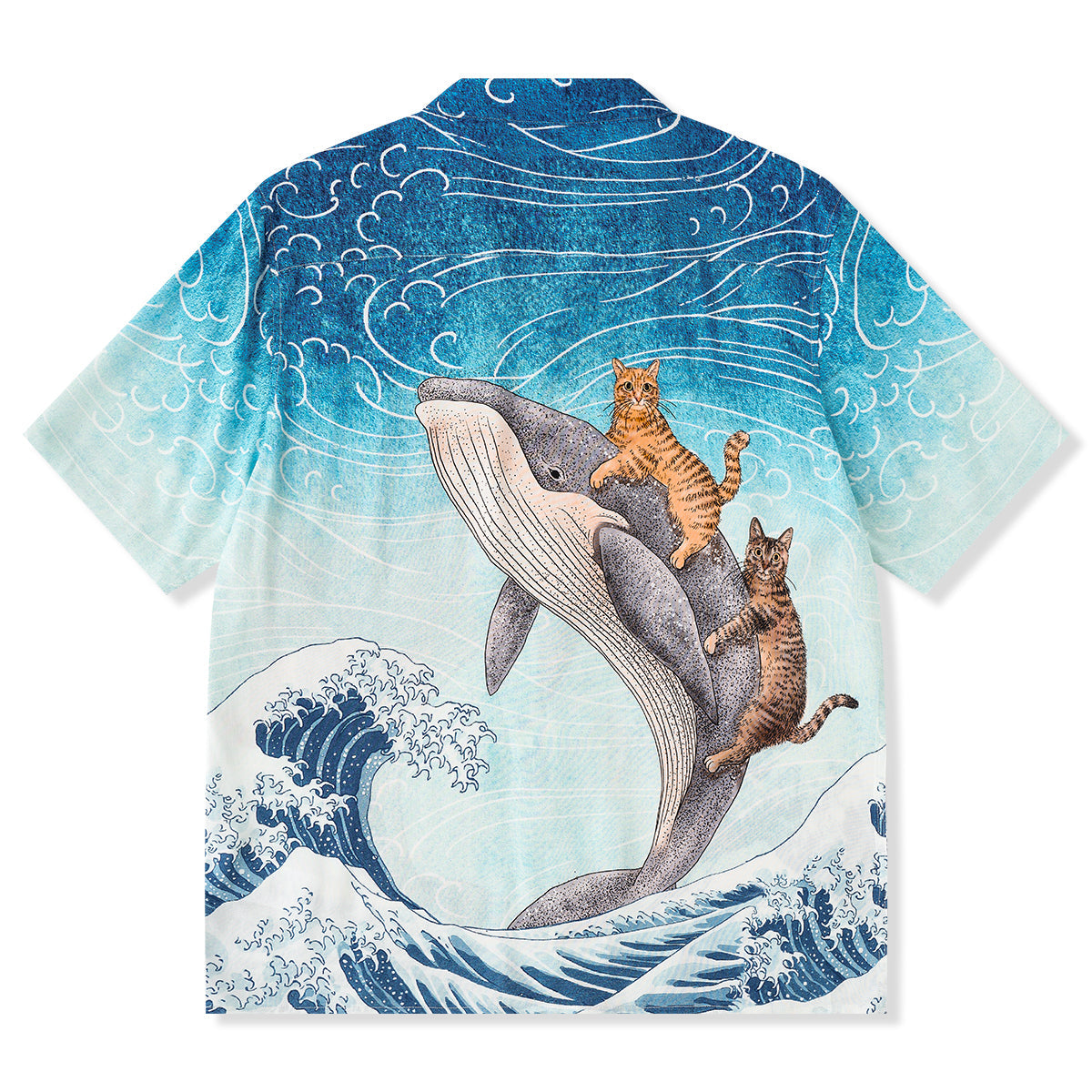 「Karaku×365CAT.ART」자수 ‘고래와 함께 헤엄치는 고양이’ 알로하 셔츠