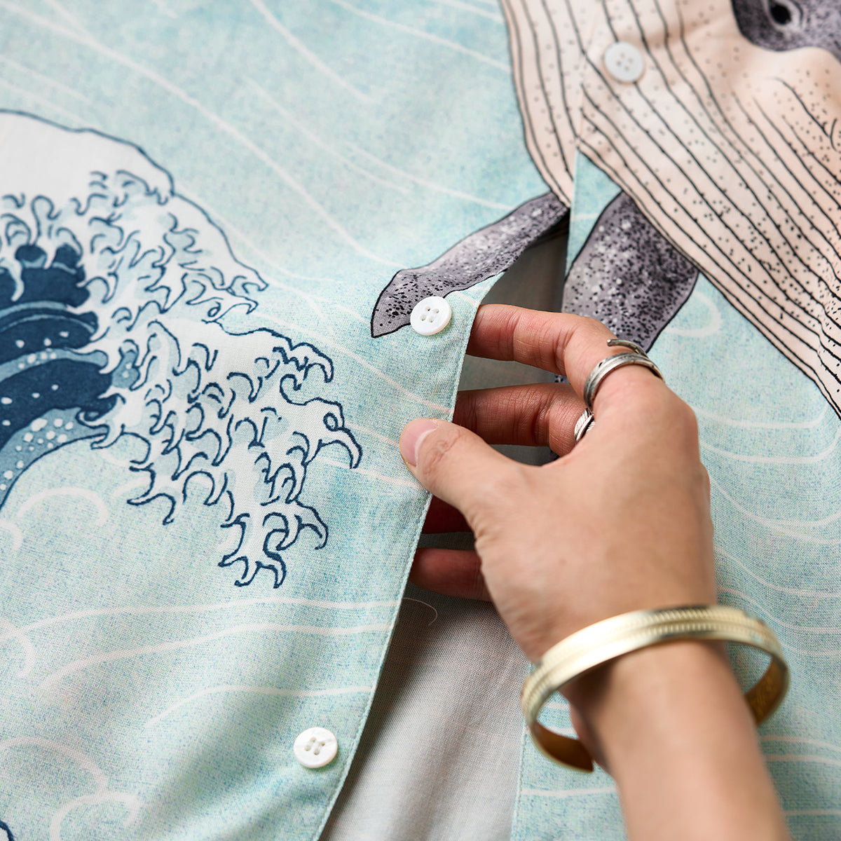 일본 전통 우키요에인 가쓰시카 호쿠사이의 『神奈川沖浪裏』‘가나가와 해변의 높은 파도 아래’를 모티브로 한 디자인으로, 파도의 정적인 힘과 고래의 역동적인 움직임이 균형 있게 표현된 아이템입니다.