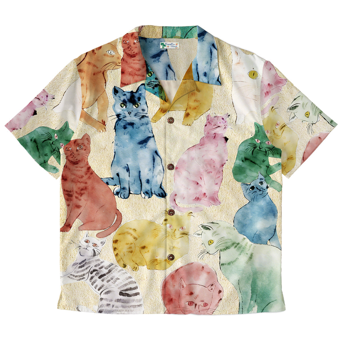 【사전예약】「알록달록 고양이」팝아트 스타일 프린트 알로하 셔츠