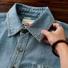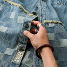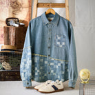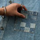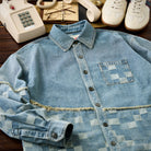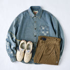 무지 데님을 기본으로 깅엄 체크 배색과 프린지 디테일을 더한 재구성 디자인 셔츠로, 단독 착용이나 레이어드 모두 스타일리시하게 연출할 수 있습니다.