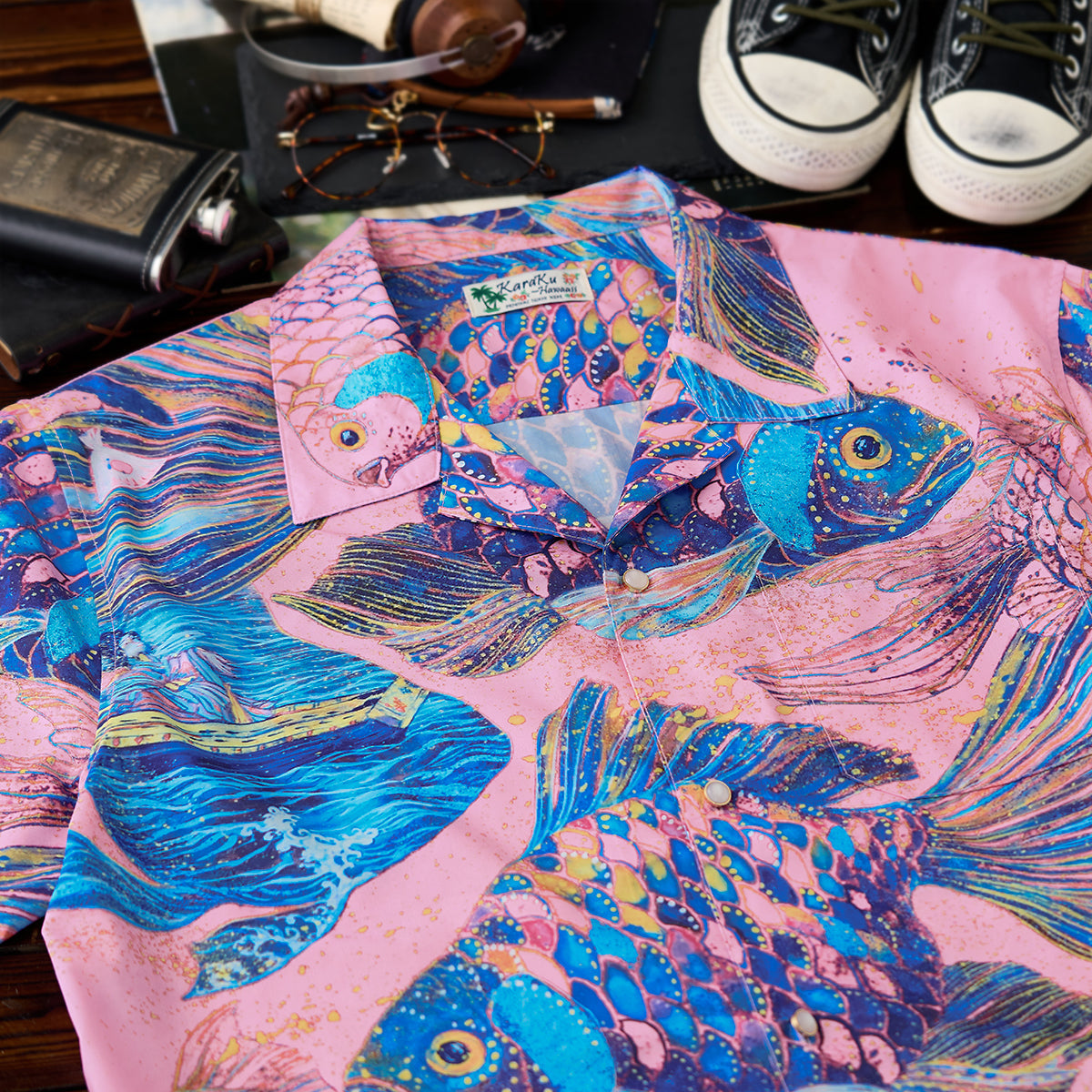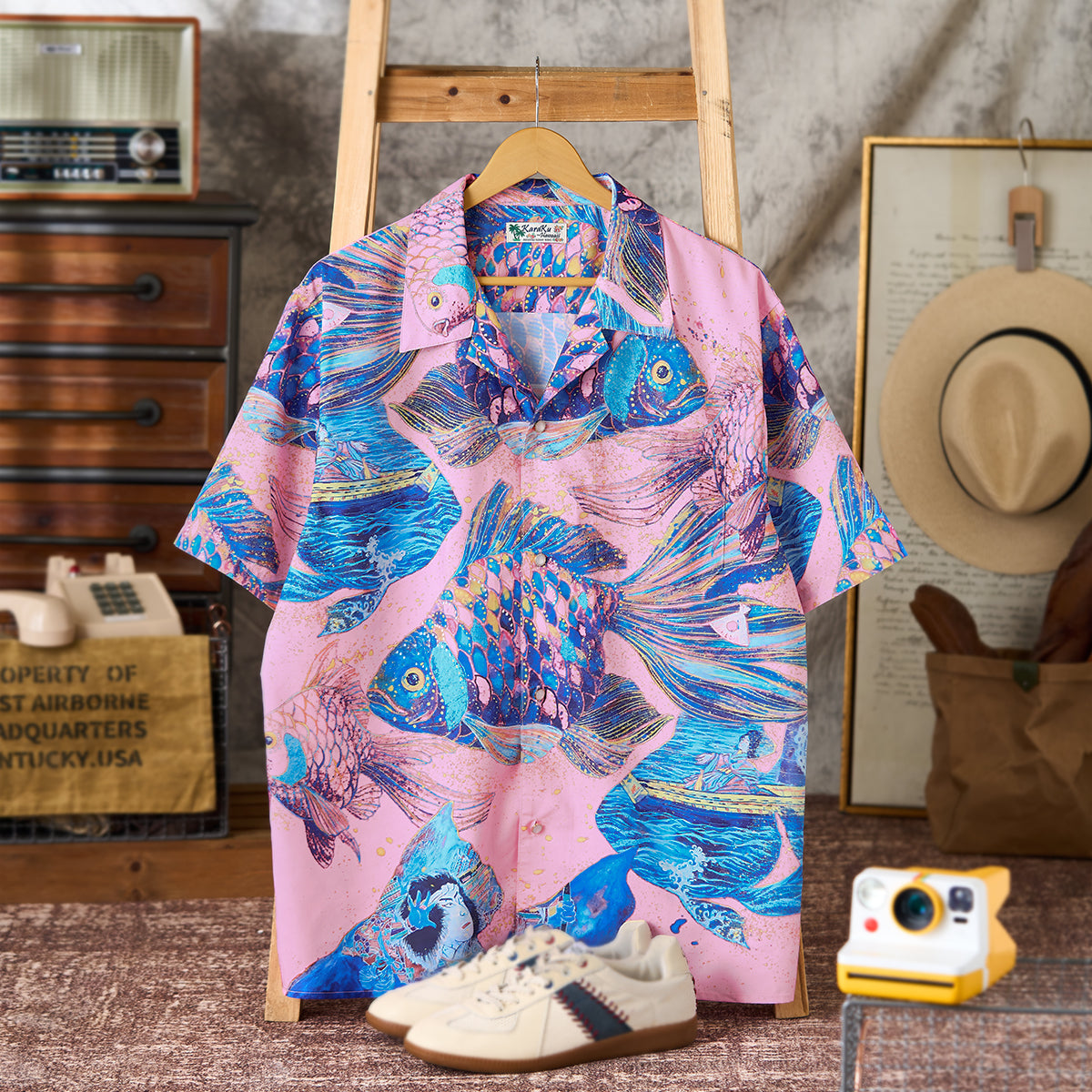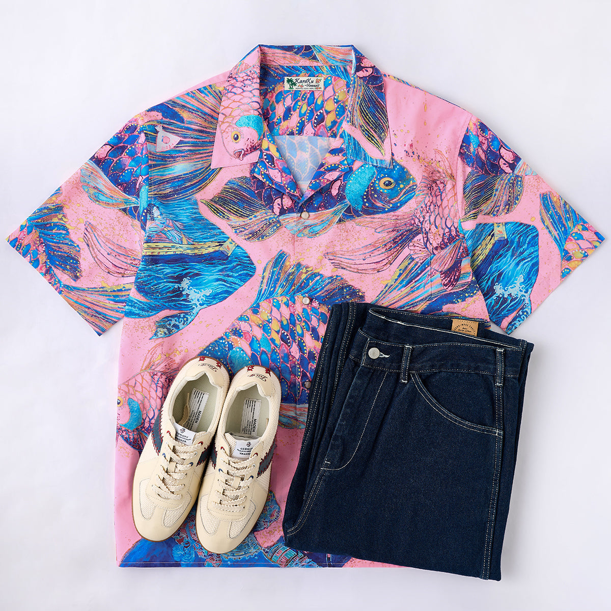 Karaku와 일본 화가 ‘彩蘭弥’가 공동 프로듀스한, ‘생명의 역동성’을 테마로 한 아트 컬렉션입니다. 다채로운 색감의 물고기 모티프를 셔츠와 티셔츠에 담아내어, 아트와 패션이 완벽하게 융합된 디자인으로 완성되었습니다.