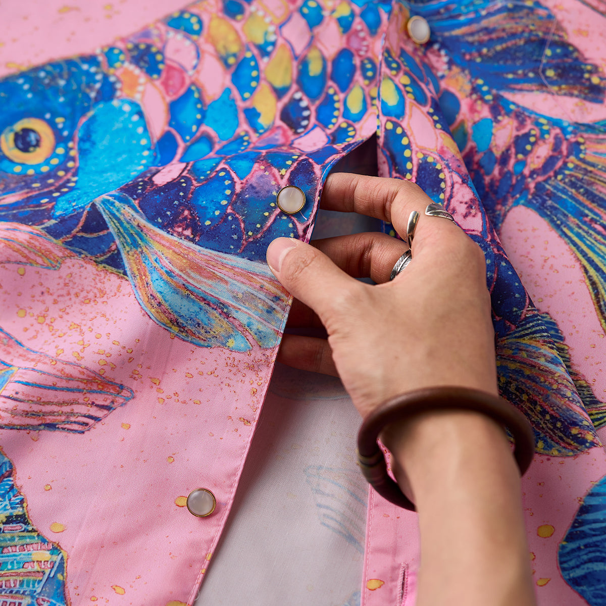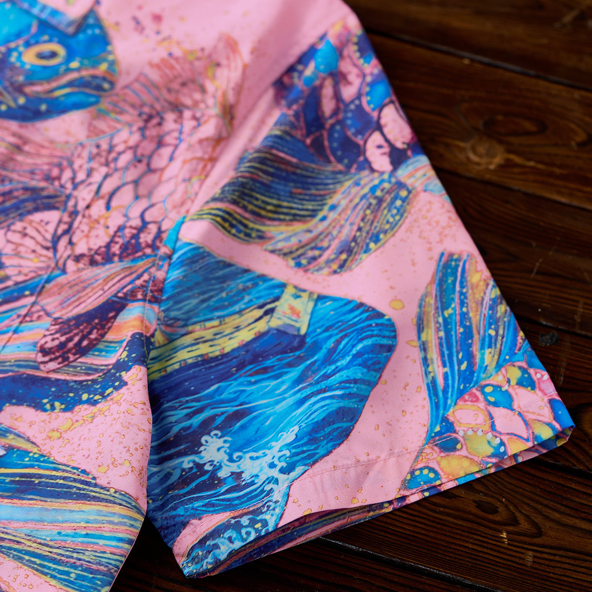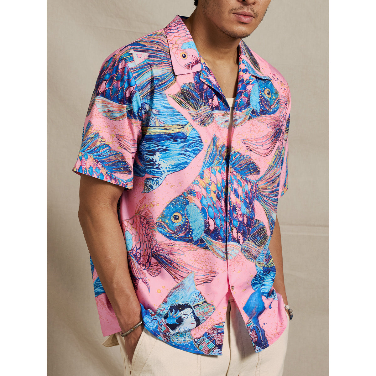 Karaku와 일본 화가 ‘彩蘭弥’가 공동 프로듀스한, ‘생명의 역동성’을 테마로 한 아트 컬렉션입니다. 다채로운 색감의 물고기 모티프를 셔츠와 티셔츠에 담아내어, 아트와 패션이 완벽하게 융합된 디자인으로 완성되었습니다.