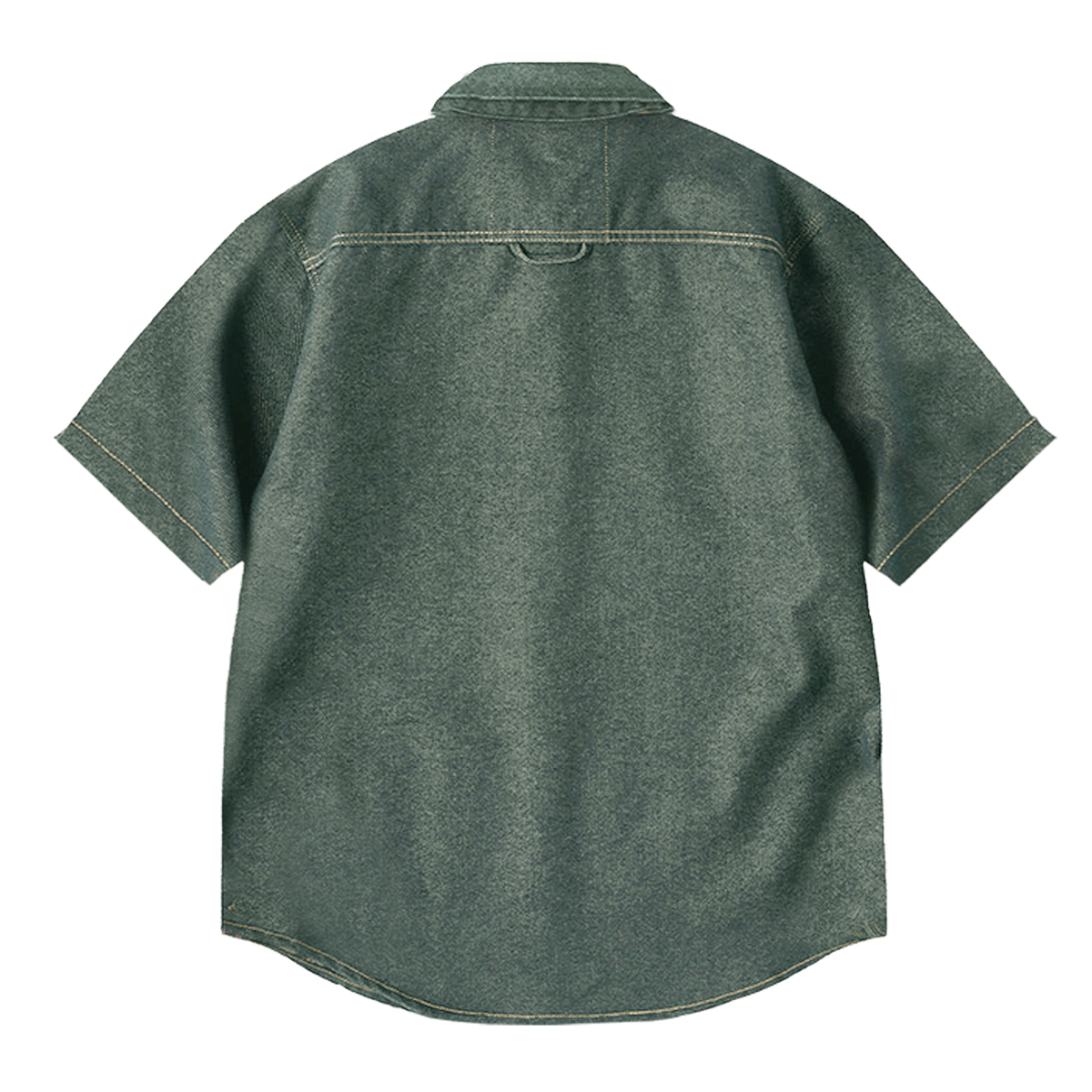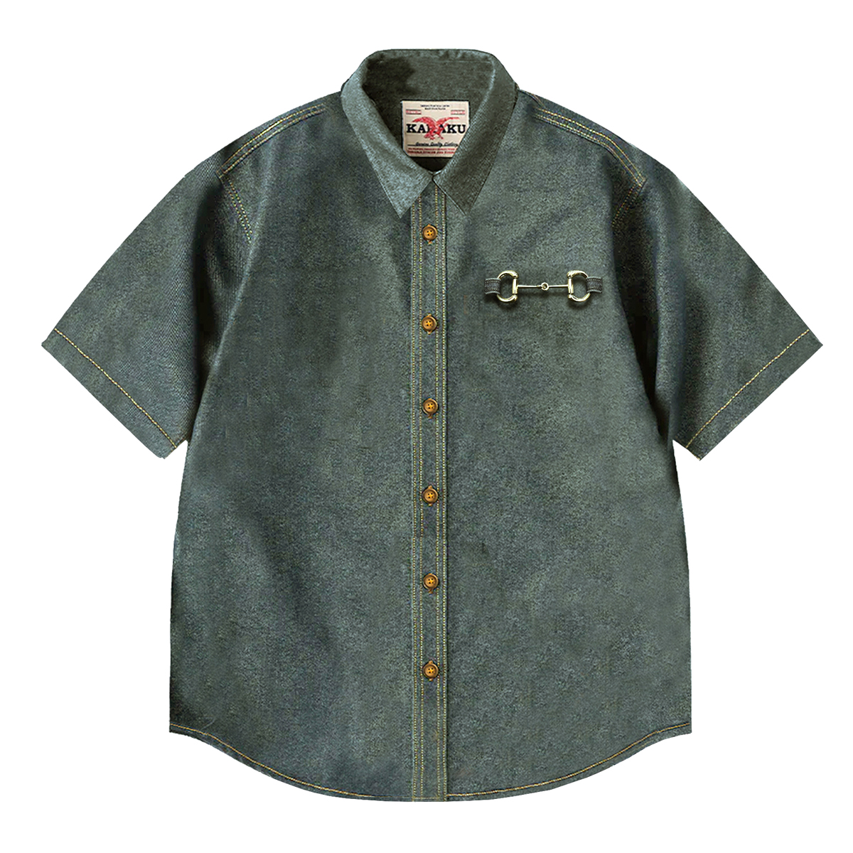 【사전예약】호스슈 버클 장식 워시드 데님 반팔 셔츠