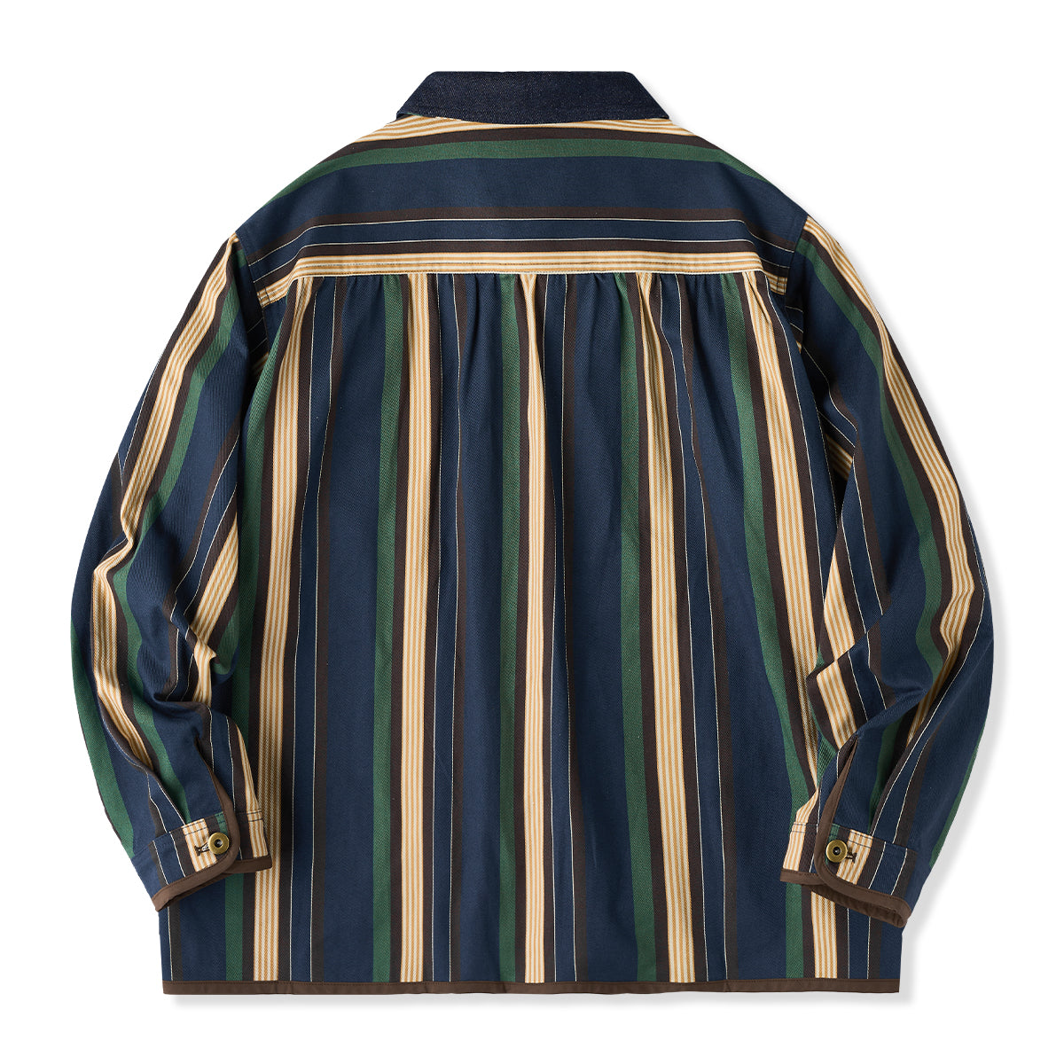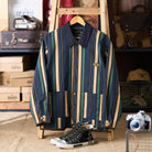 【사전예약】「STAY TRUE」자수 와펜 & 데님 칼라 배색 멀티 스트라이프 자켓