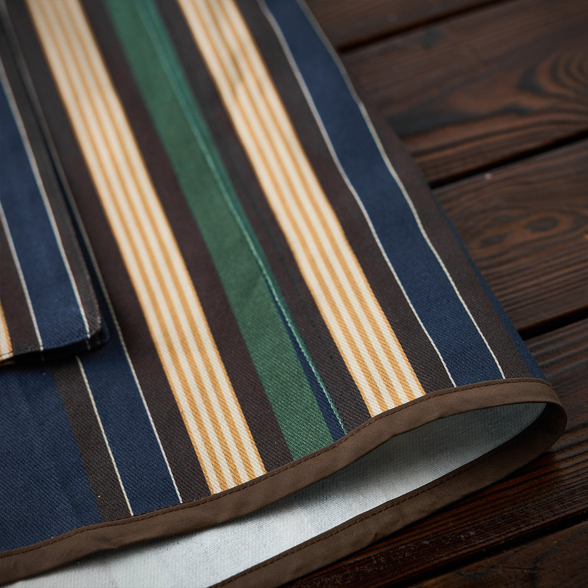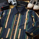 블루, 옐로우, 그린 등 다양한 컬러의 멀티 스트라이프 패턴이 클래식하면서도 레트로한 분위기를 연출합니다.