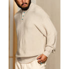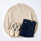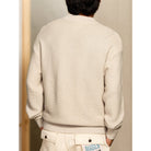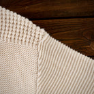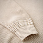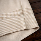 어깨와 밑단, 소매 일부는 허니콤(벌집) 조직, 본체는 촘촘한 편직 플레인 니트 소재로 제작되었습니다.