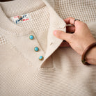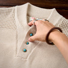 【사전예약】터키석 단추 배색 허니콤 조직 니트 스웨터