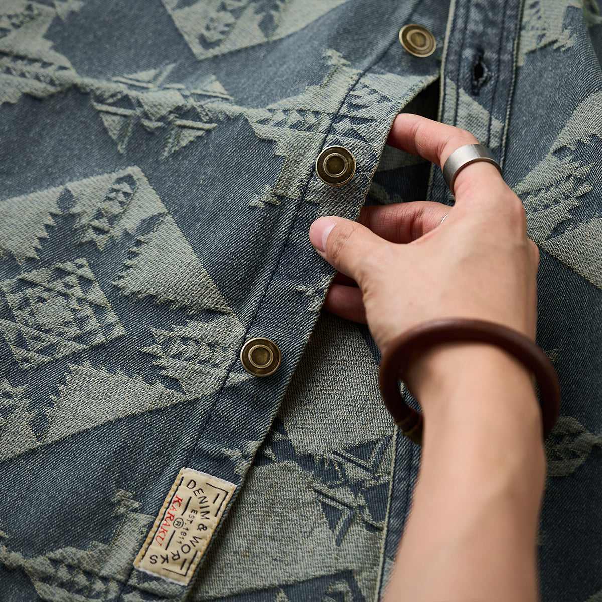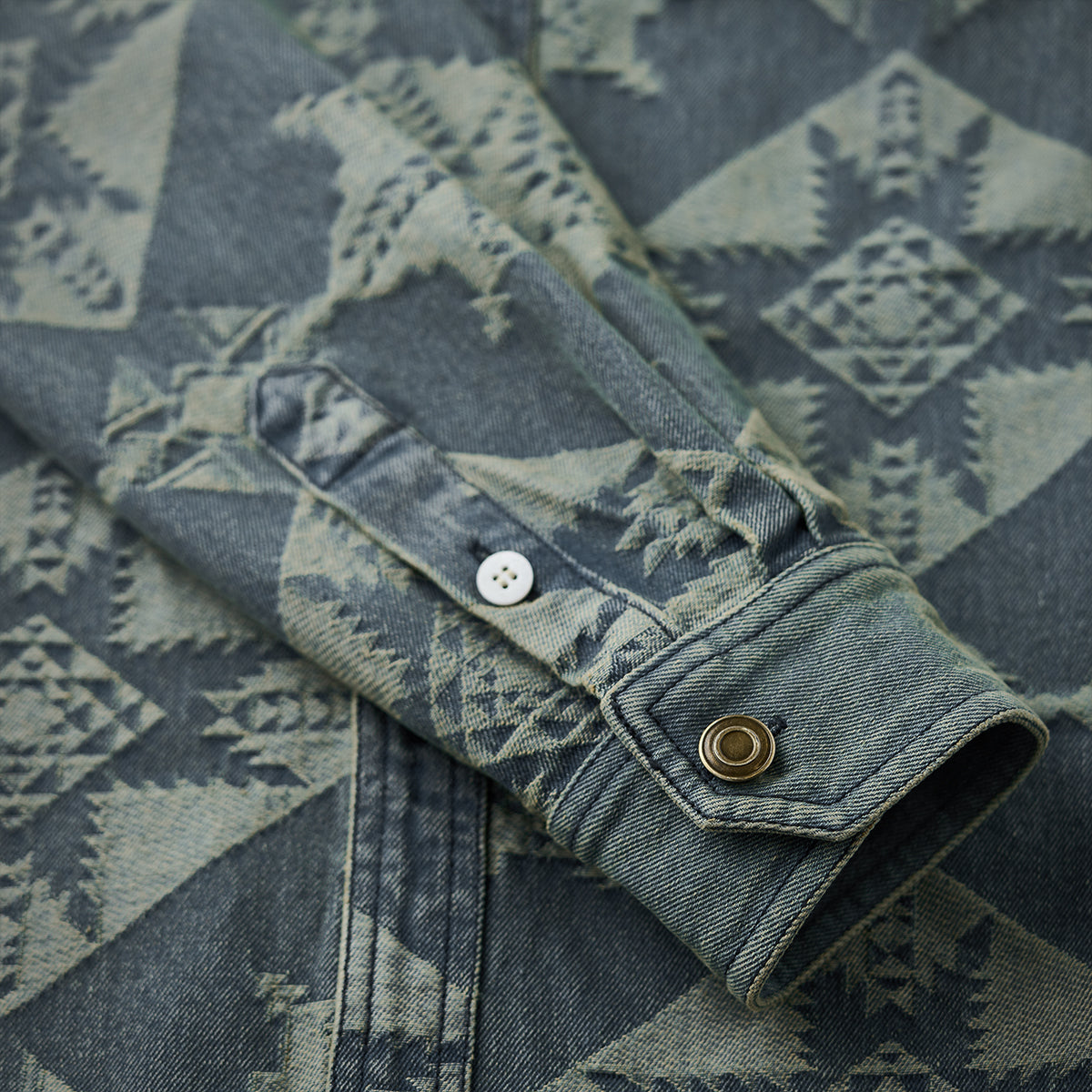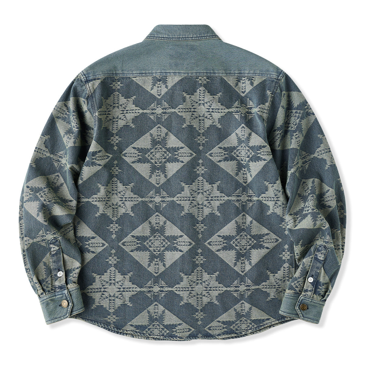 네이티브 아메리칸 기하학 패턴 자카드 데님 셔츠