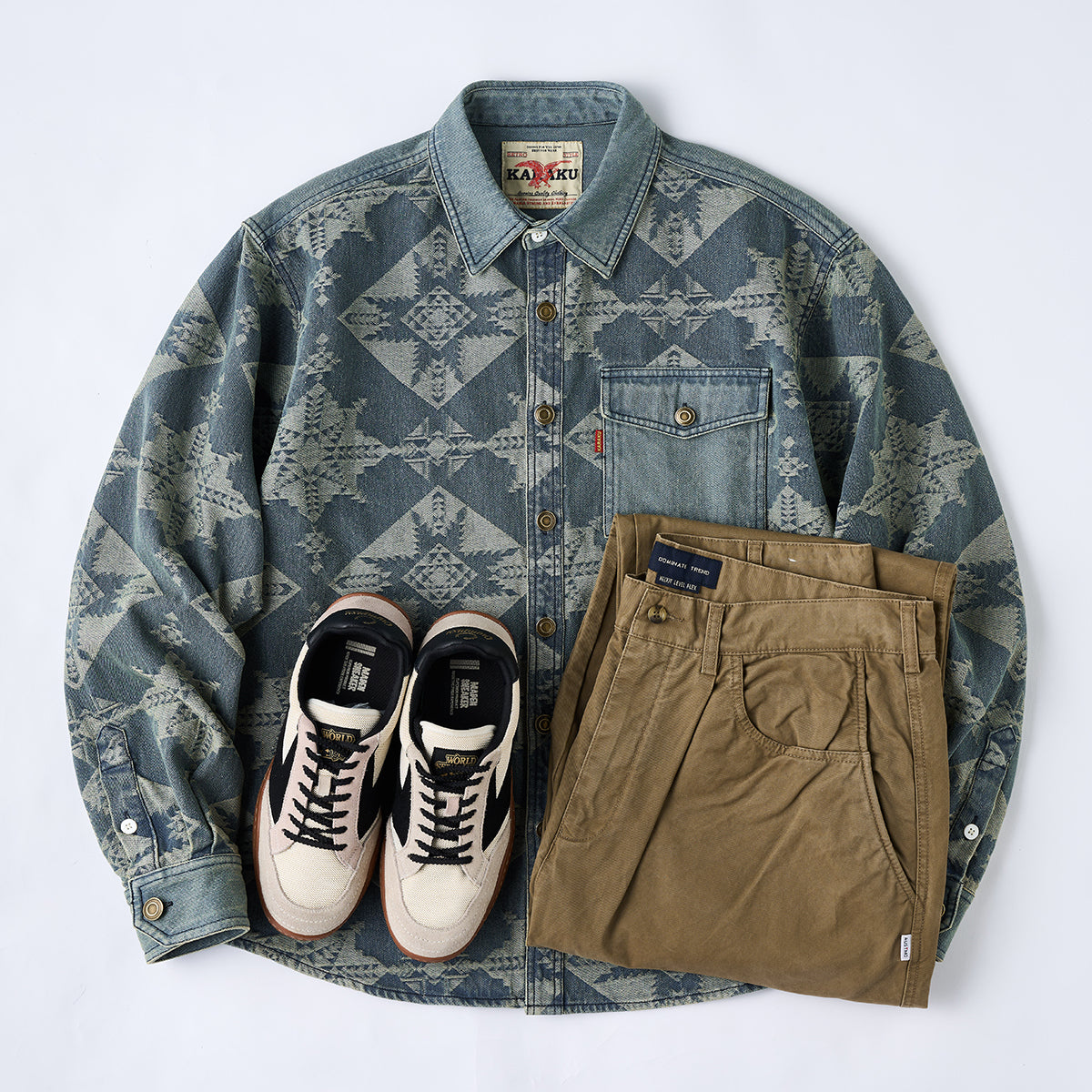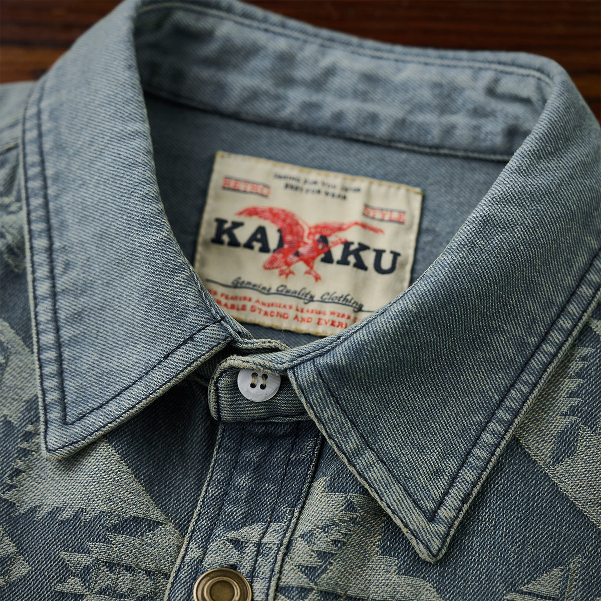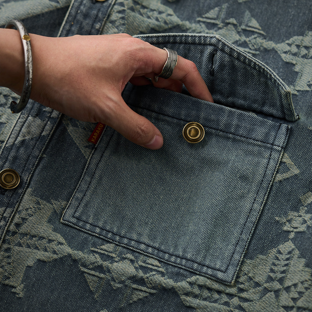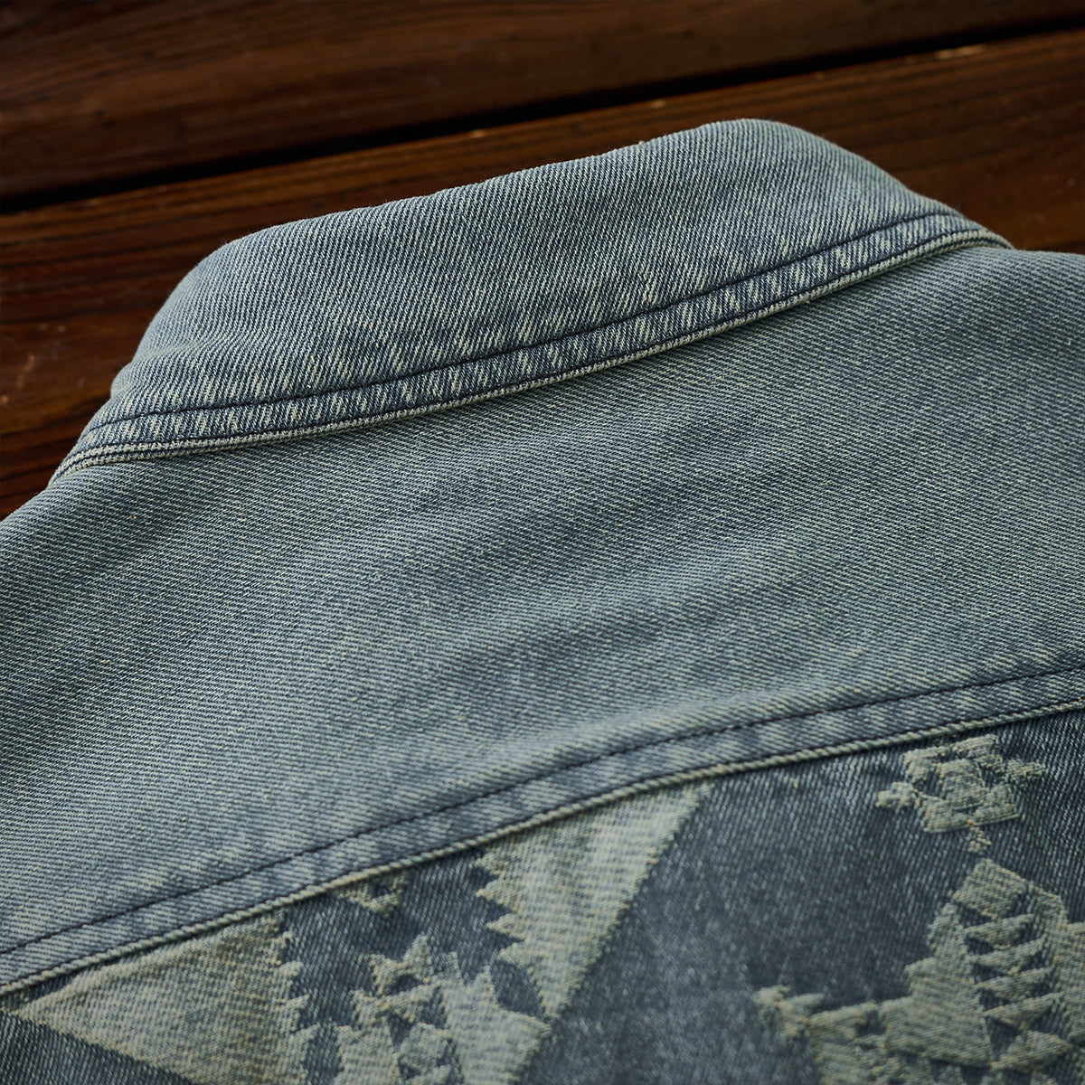 네이티브 아메리칸 기하학 패턴 자카드 데님 셔츠