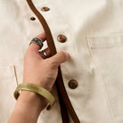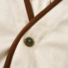 버튼은 스톤 텍스처로 내추럴한 무드를 살렸으며, 최상단의 플라워 버튼에는 터키석 느낌의 스톤을 세팅해 디테일한 완성도를 더했습니다.