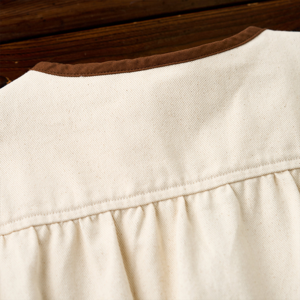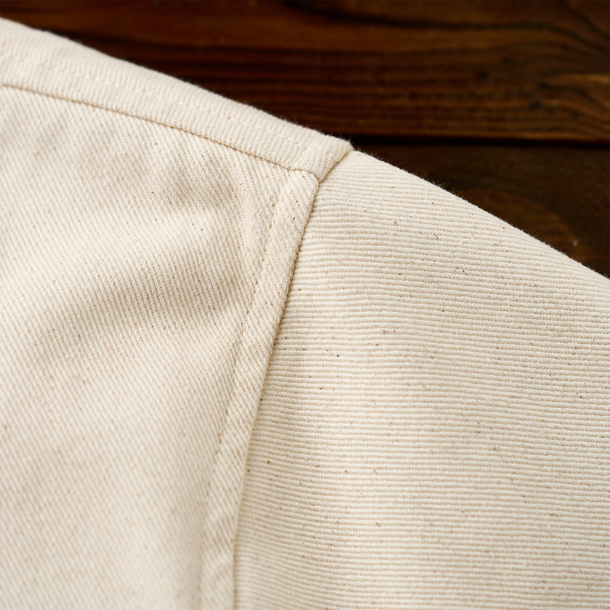 적당한 두께감과 탄탄한 내구성으로, 통기성이 좋고 오래 입어도 형태가 유지되는 코튼 트윌 소재입니다.