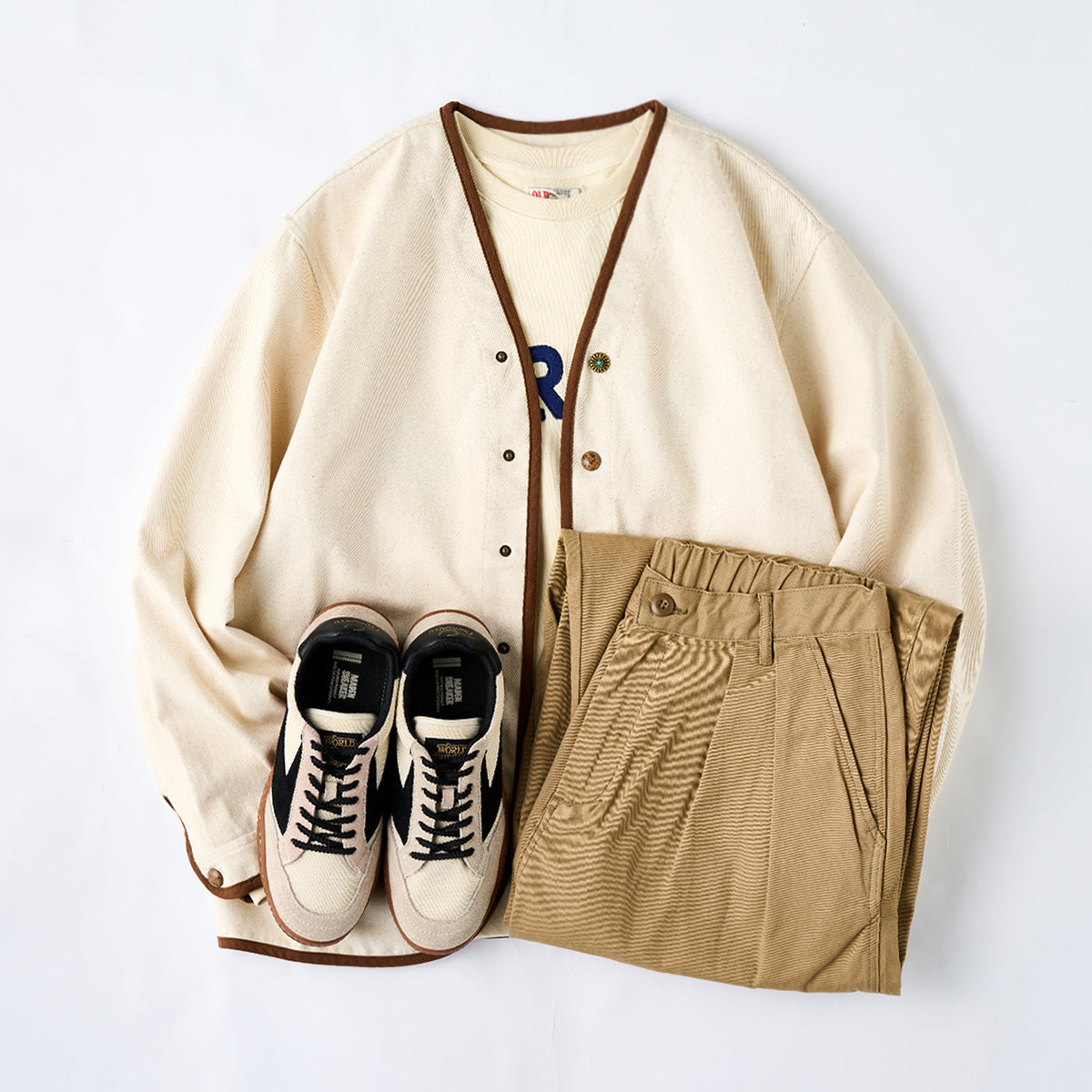 데님이나 치노 팬츠와 잘 어울리며, 레더 부츠나 스니커즈를 매치하면 캐주얼하면서도 조화로운 스타일을 연출할 수 있습니다. 이너로 화이트나 그레이 톤 티셔츠를 레이어드하면 전체적으로 가볍고 산뜻한 분위기를 연출할 수 있습니다.