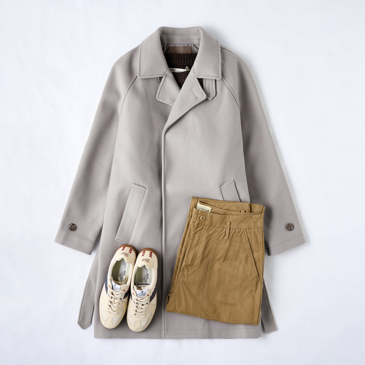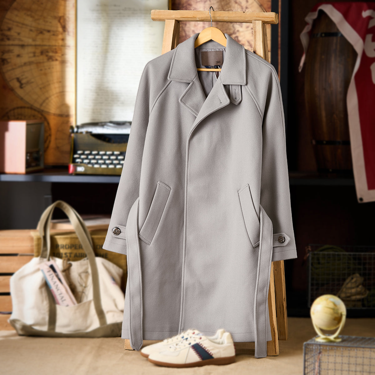 박스 실루엣에 가까운 직선 라인을 기반으로, 허리 벨트를 활용해 A라인이나 슬림한 실루엣으로 변화를 줄 수 있습니다.