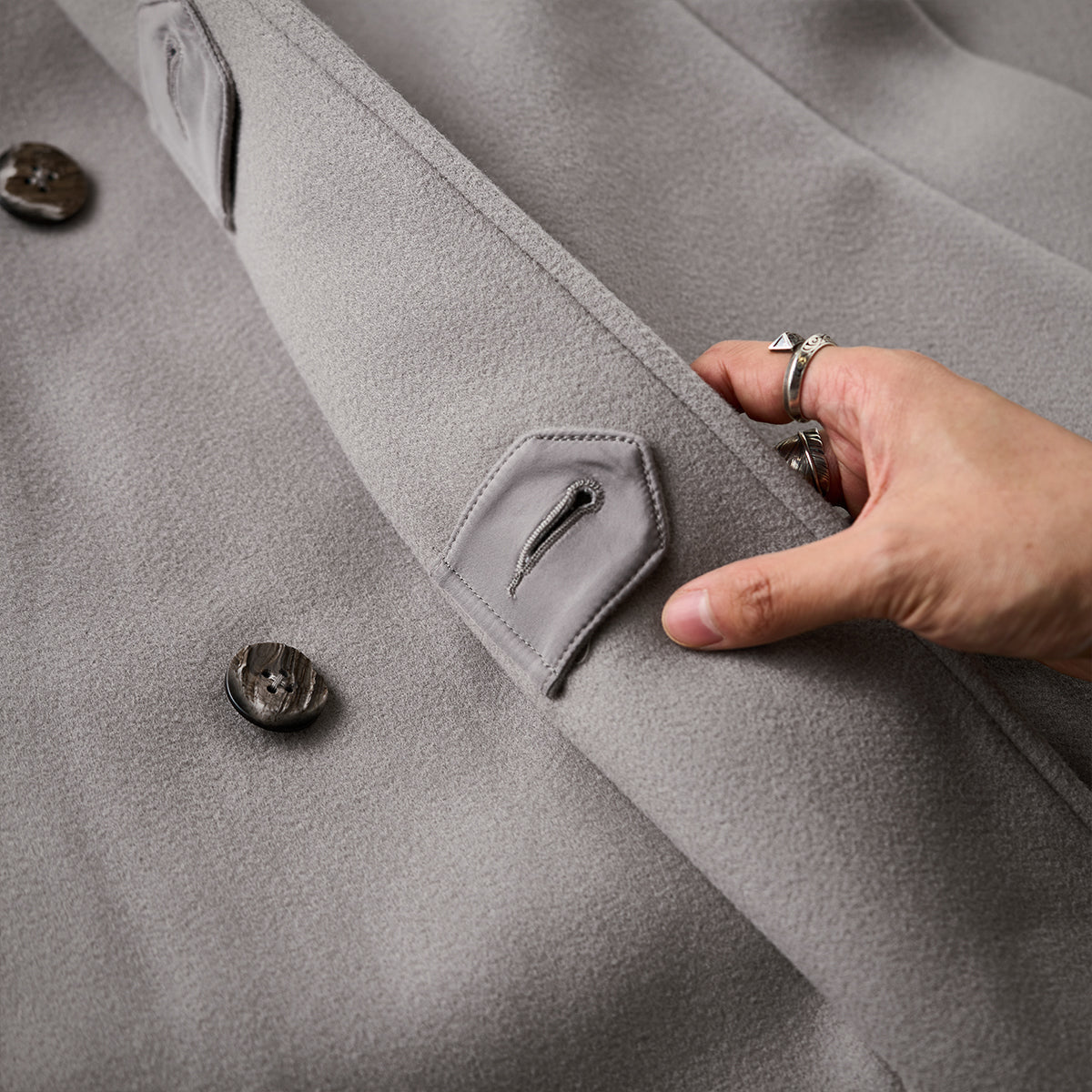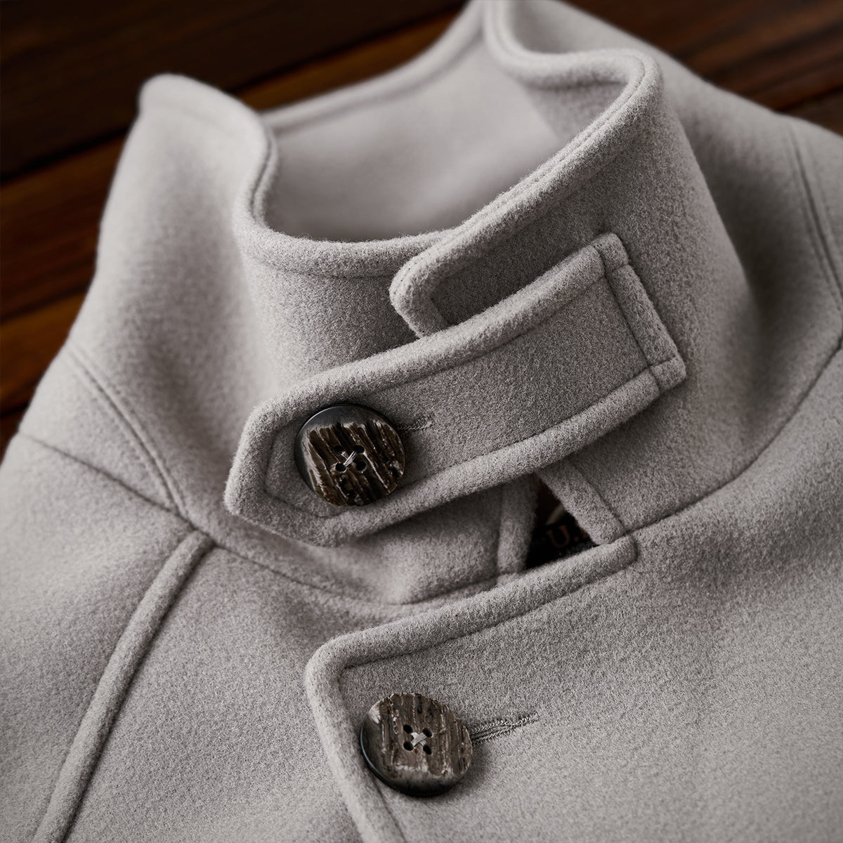 Business&Casual 친 스트랩 스탠드 칼라 뒷면 슬릿 롱코트