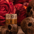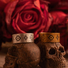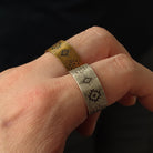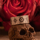 민속 패턴과 나바호 토템 문양이 돋보이는 티타늄 와이드 링, 손가락에 묵직한 포인트를 주는 빈티지 감성 아이템.