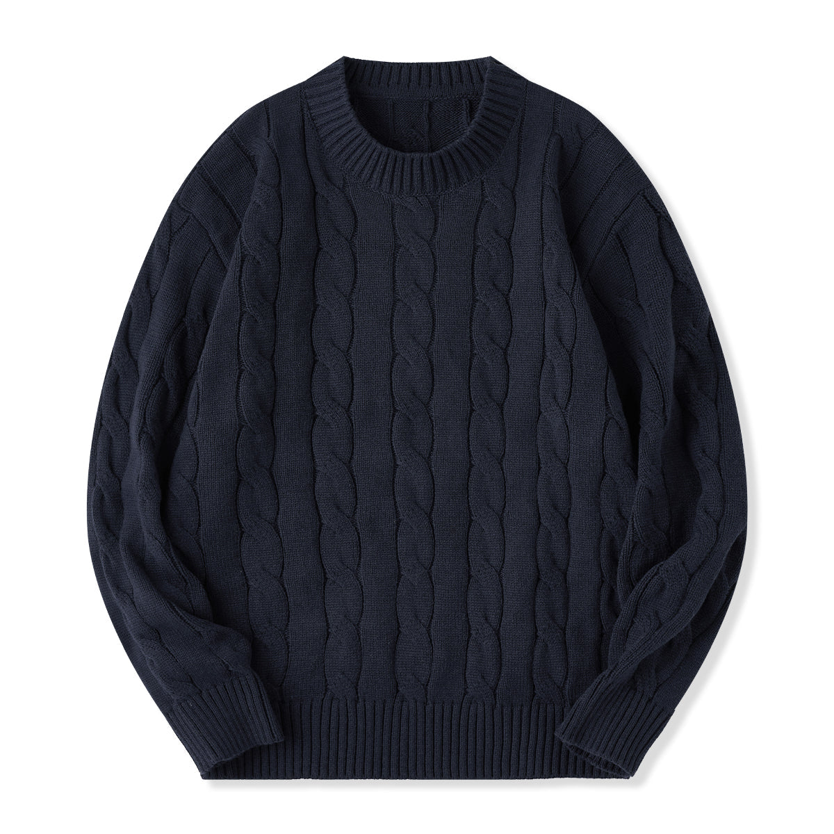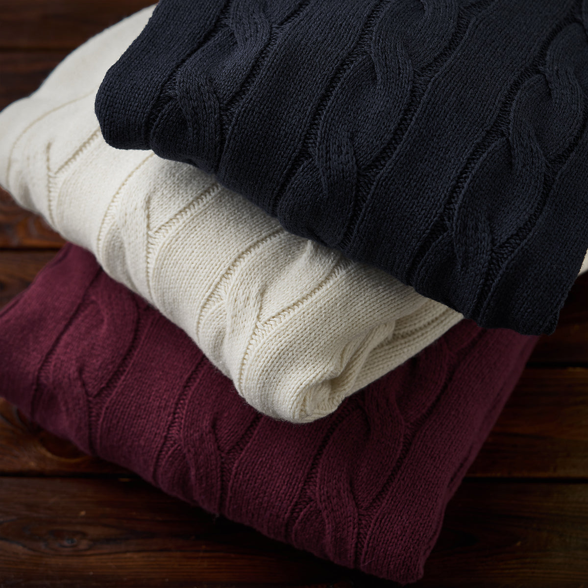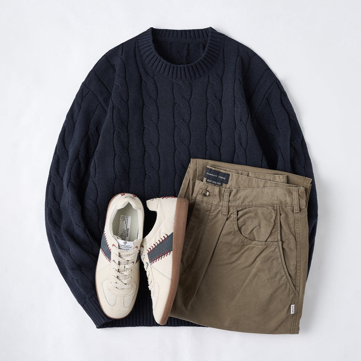 입체감 있는 케이블 짜임의 크루넥 니트로, 단독 착용이나 레이어드 모두에 잘 어울리며, 3컬러로 다양한 분위기를 연출할 수 있습니다.