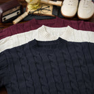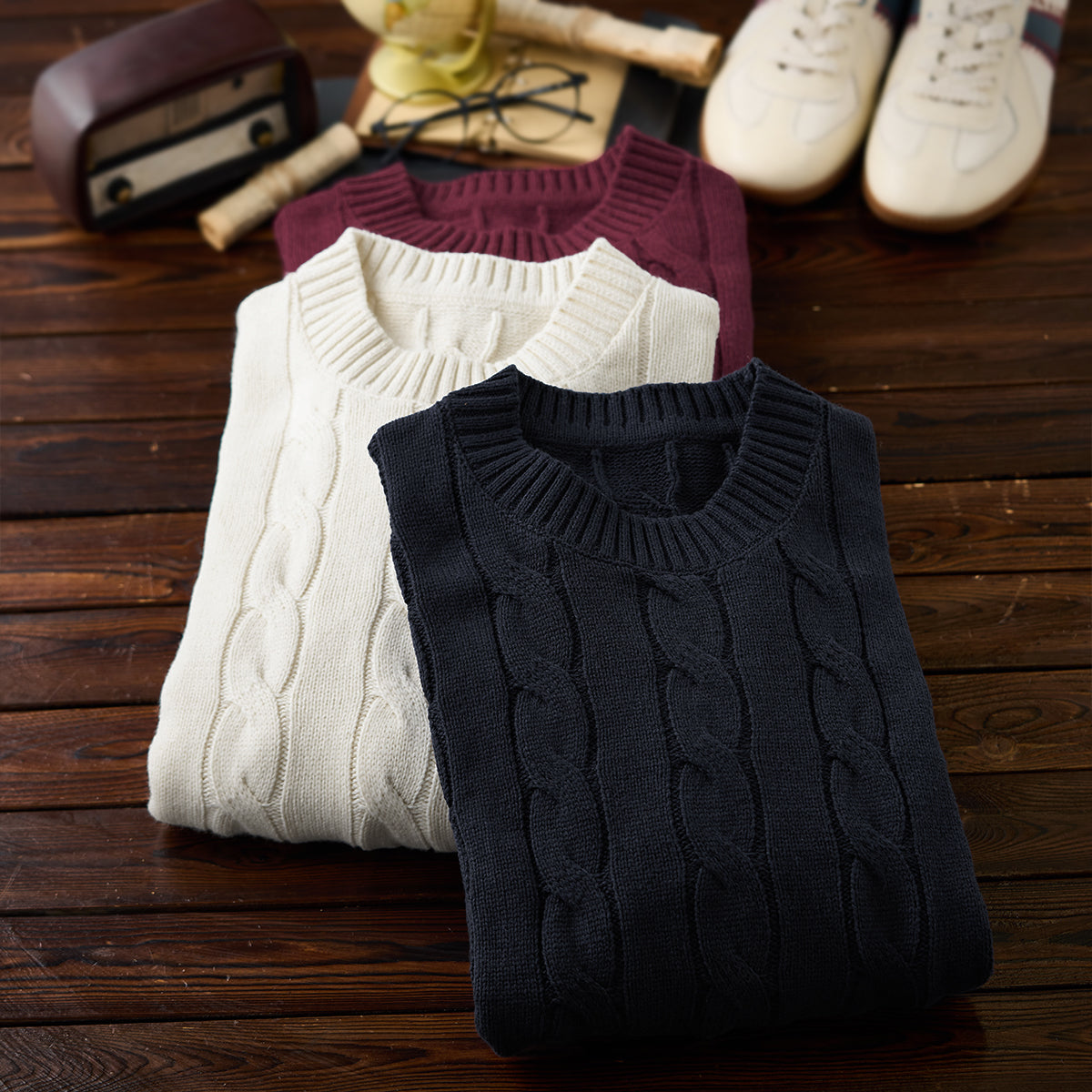 3컬러 울 혼방 케이블 니트 크루넥 스웨터