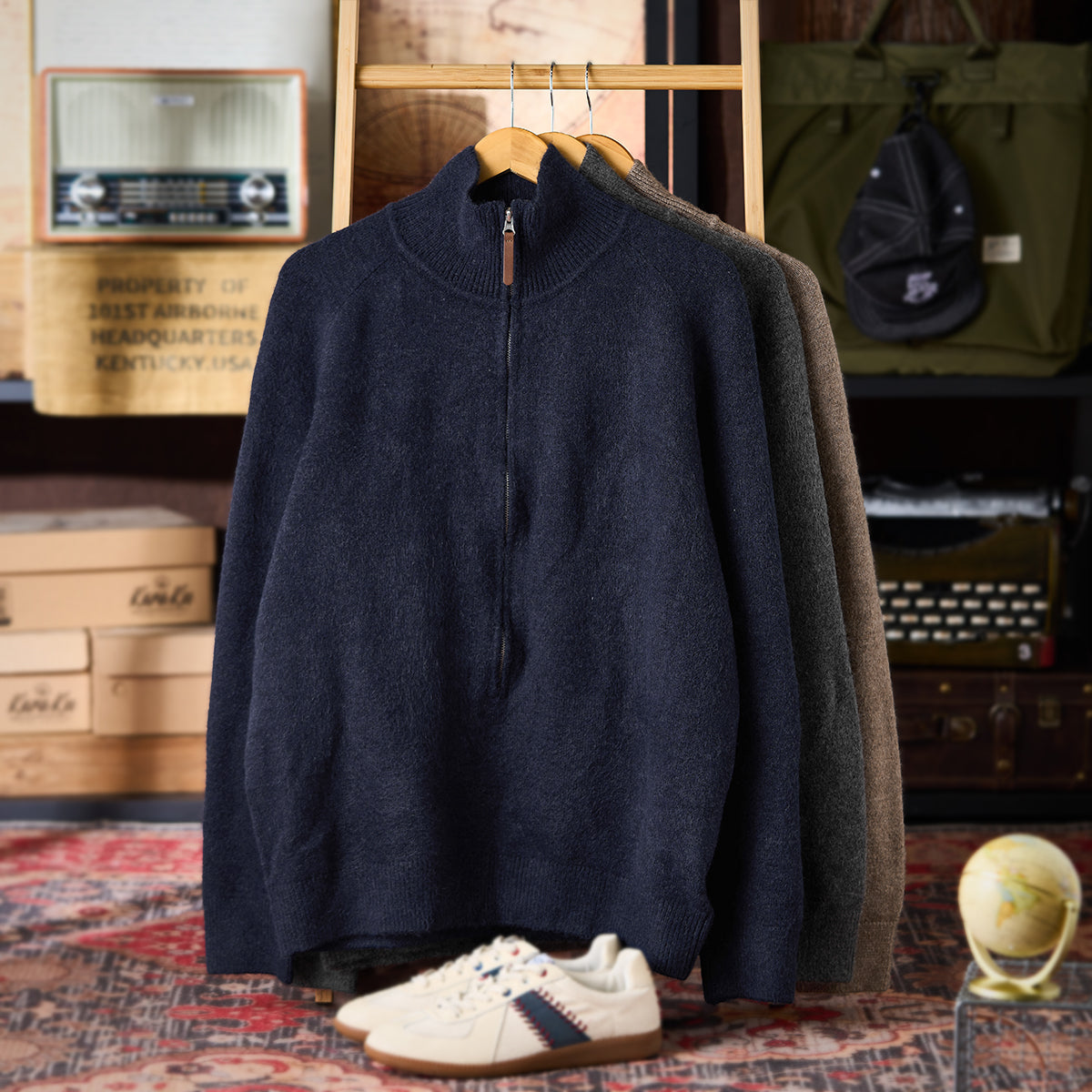 3컬러 헤비웨이트 하프집 하이넥 니트 스웨터
