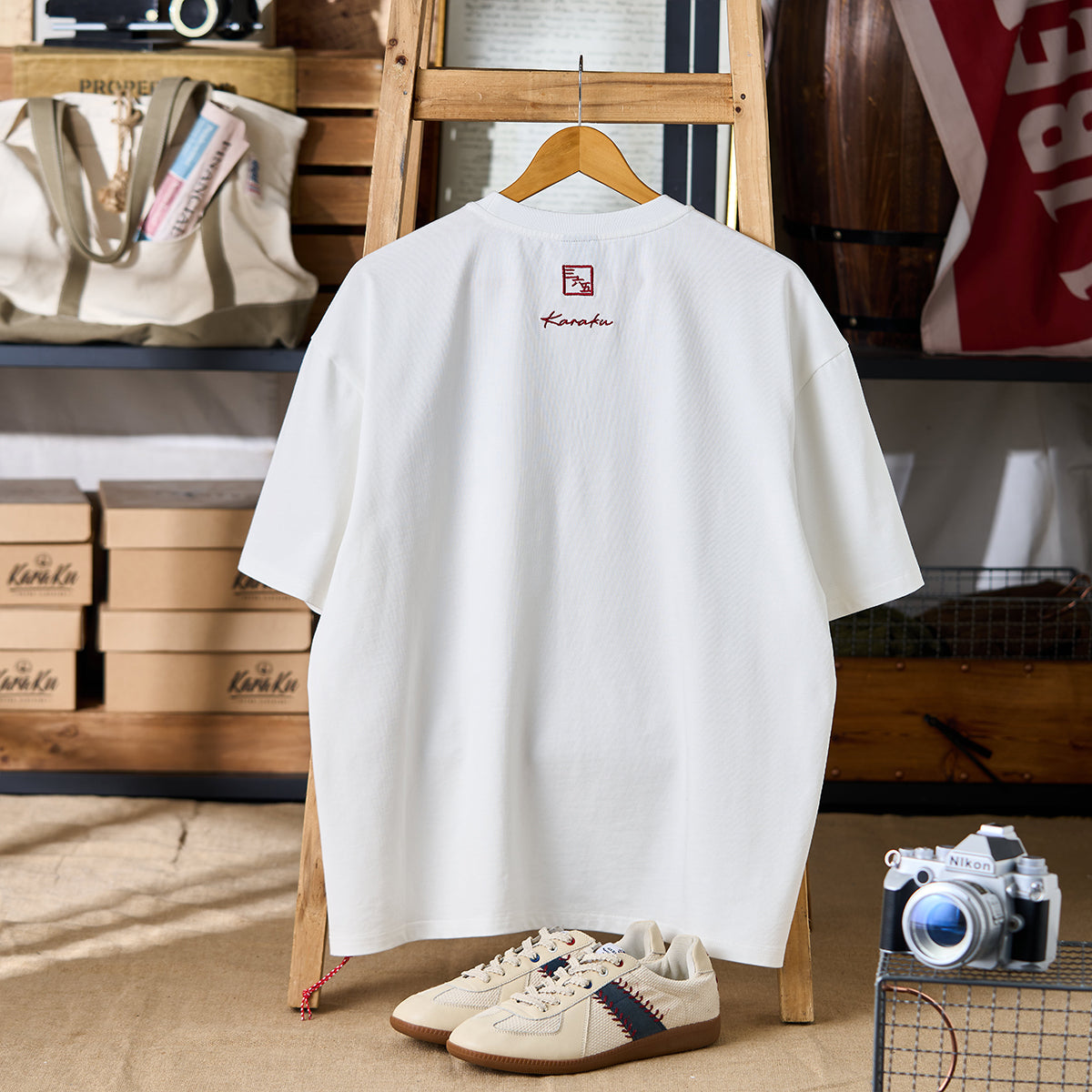 「Karaku」와 일러스트레이터 ‘365CAT.ART’가 함께 제작한 고양이 프린트 아이템입니다. 여유로운 핏으로 편안한 시티 캐주얼 스타일을 완성합니다.