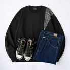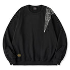 【사전예약】페이즐리 패턴 데님 배색 & 지퍼 디테일 크루넥 풀오버 스웨트셔츠