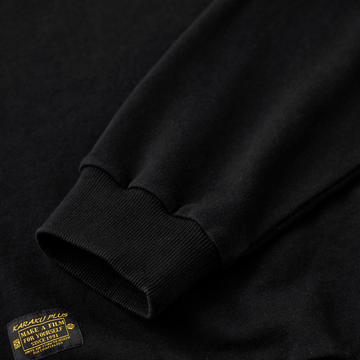 왼쪽 어깨에서 등판까지 페이즐리 데님 배색과 지퍼 디테일이 포인트이며, 스웨트와 데님의 소재 조합으로 위트 있는 분위기를 더한 데일리 캐주얼 아이템입니다.