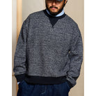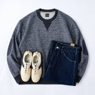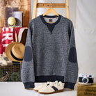 V자 패널과 팔꿈치 보강 패치가 돋보이는 멜란지 스웨트셔츠. 부드러운 리브와 촘촘한 짜임이 편안함과 빈티지 감성을 동시에 제공합니다.