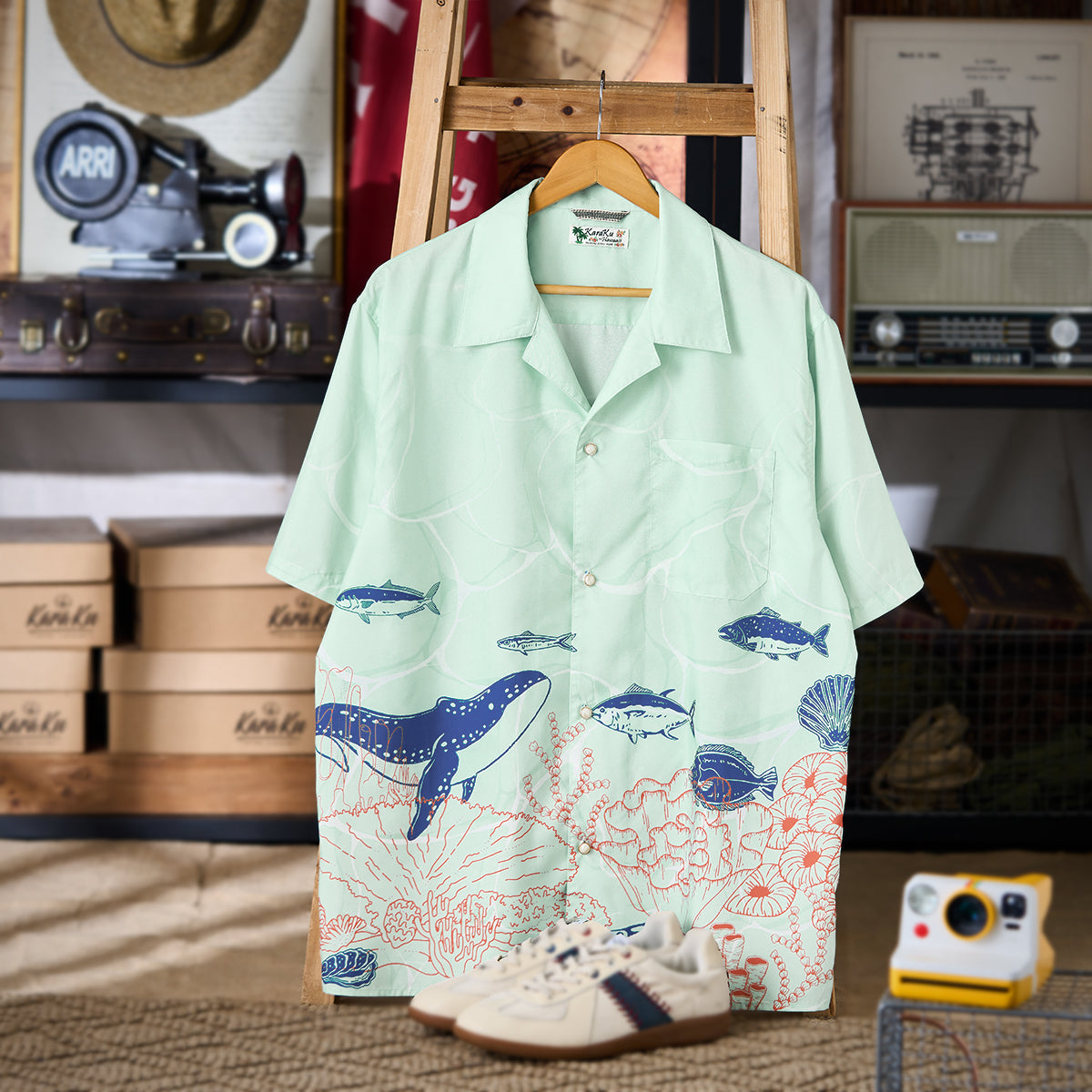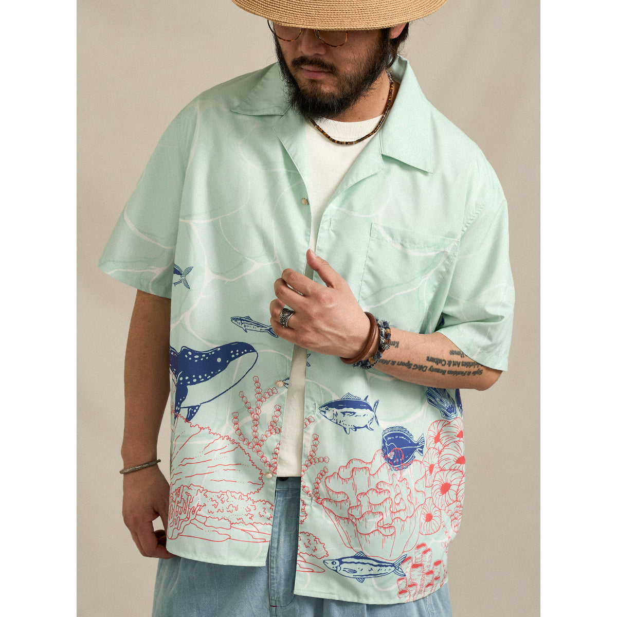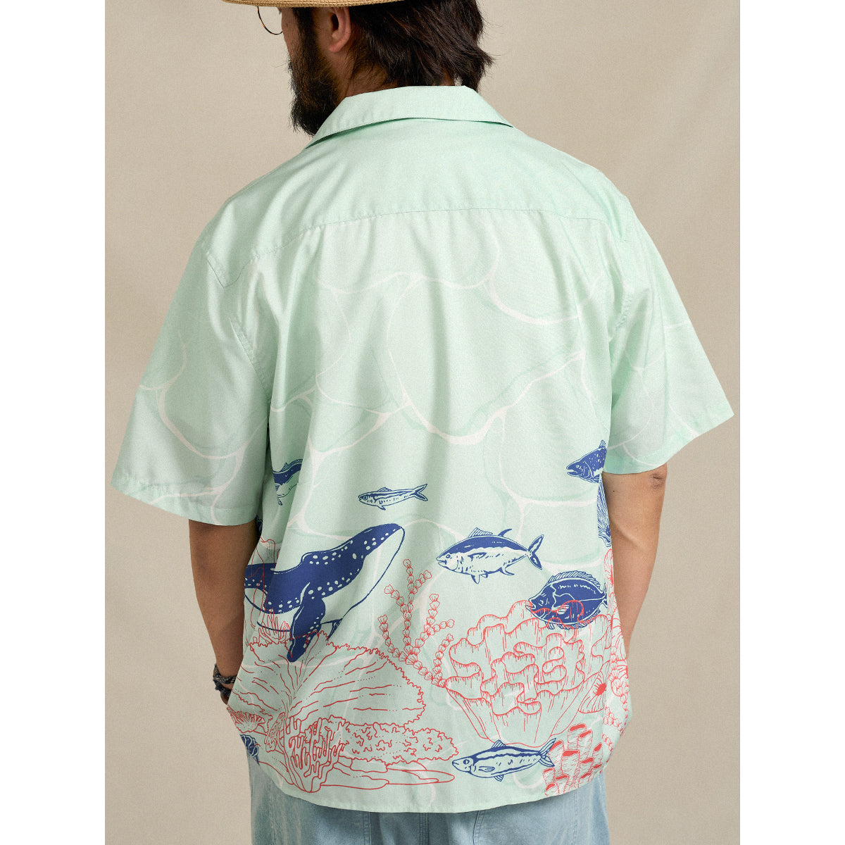 【사전예약】「여름 바닷속 퍼레이드」해양 생물 올오버 프린트 알로하 셔츠