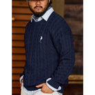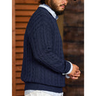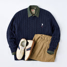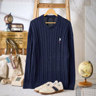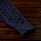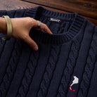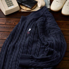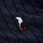 「고양이와 공놀이」자수 케이블 짜임 네이비 니트 스웨터