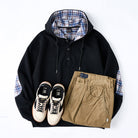 팔꿈치 패치와 안감 체크 패턴, 하프 버튼 디테일이 돋보이는 후드티로, 캐주얼한 일상복은 물론 개성 있는 스타일링에도 잘 어울립니다.