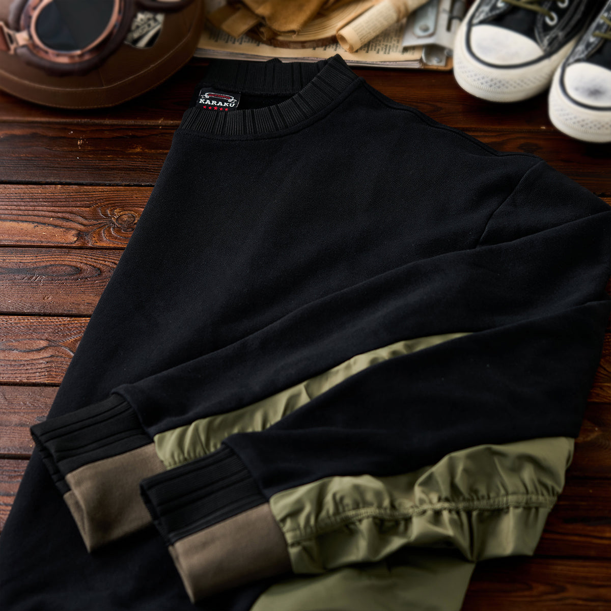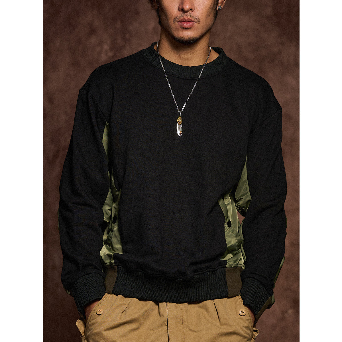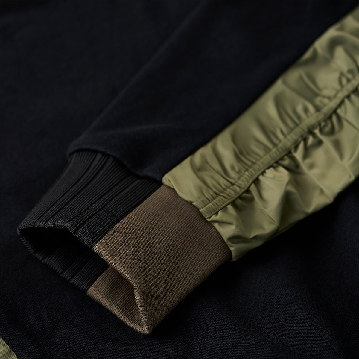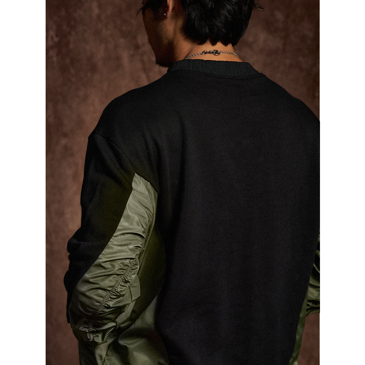 나일론 배색 소매 셔링 처리 풀오버 스웨트셔츠