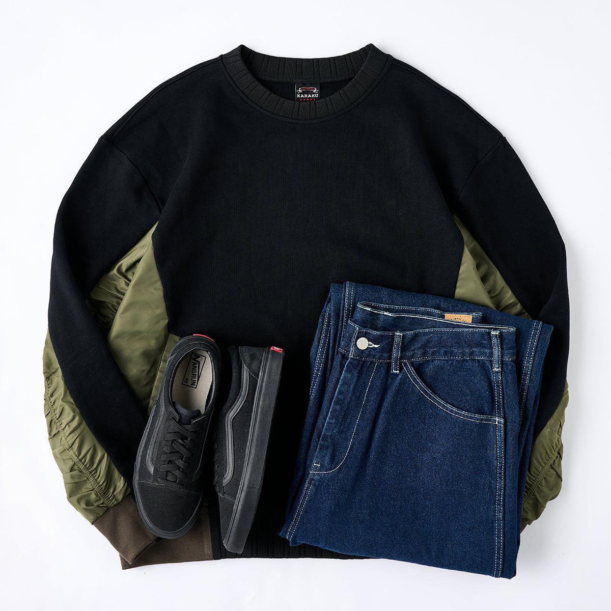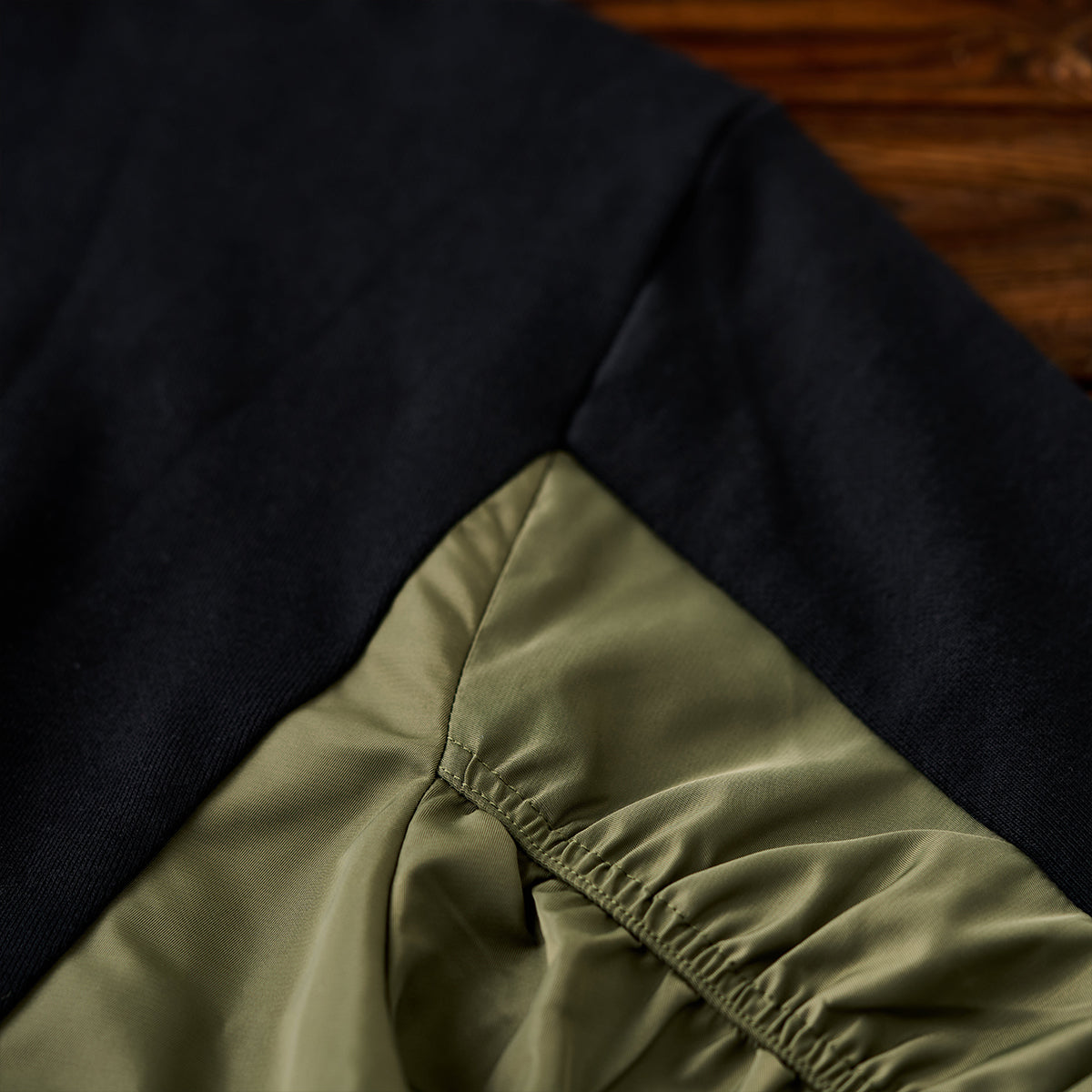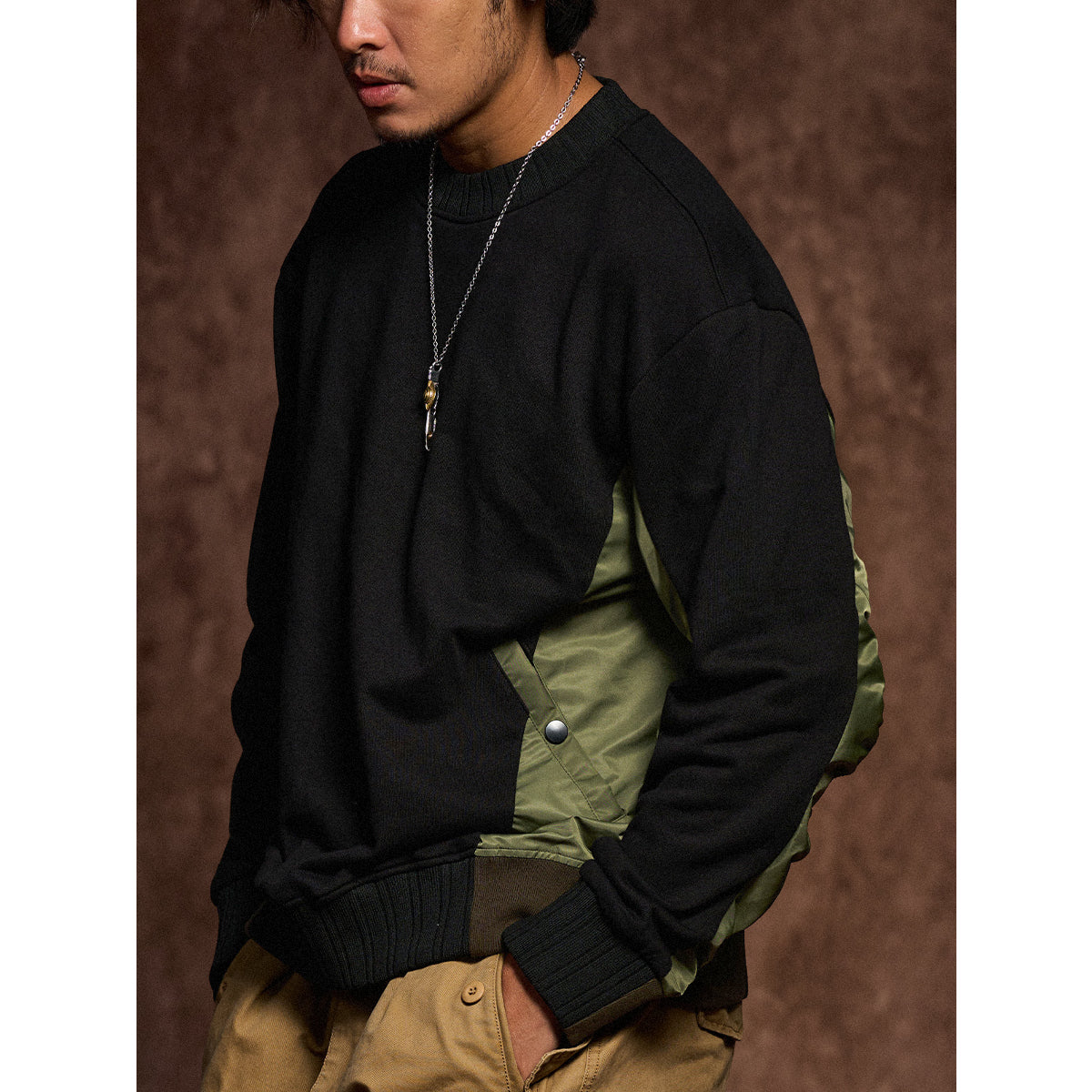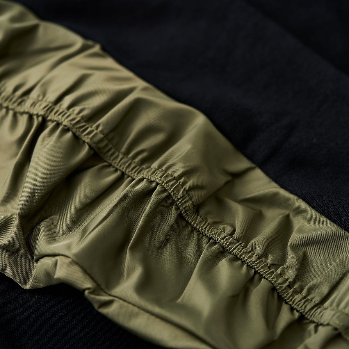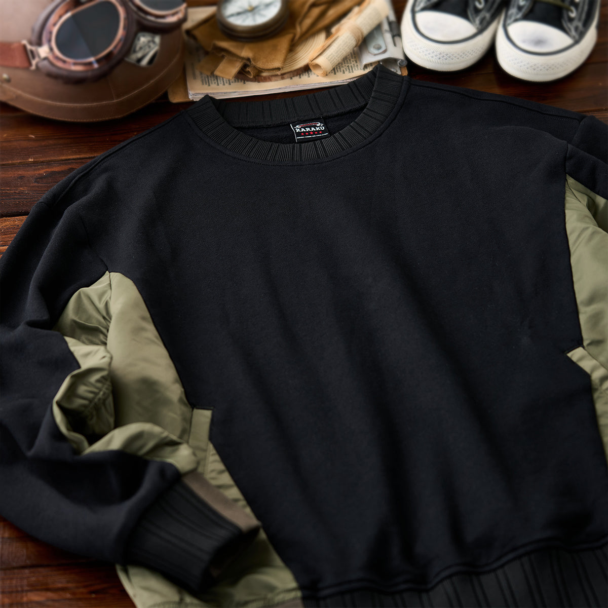 나일론 배색 소매 셔링 처리 풀오버 스웨트셔츠