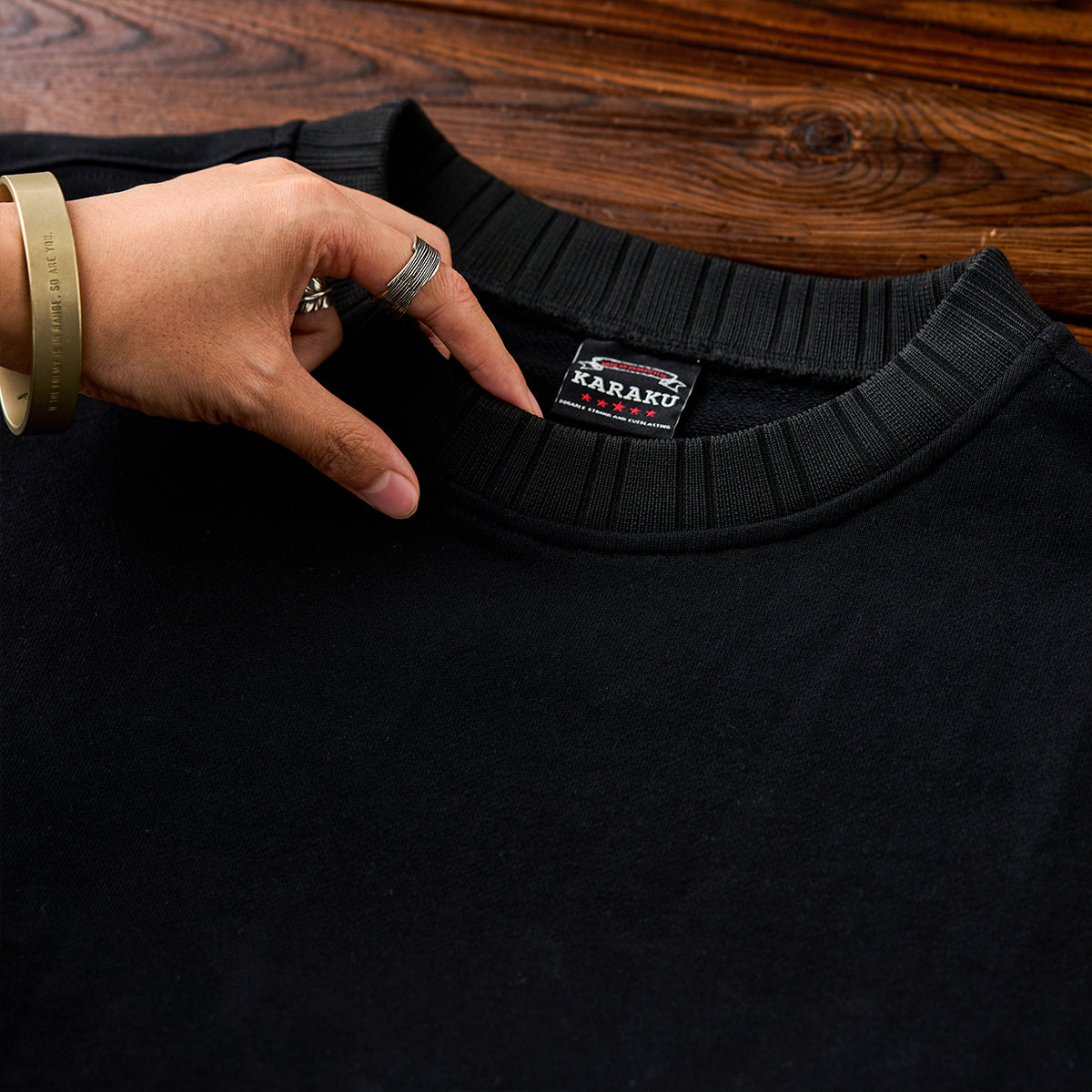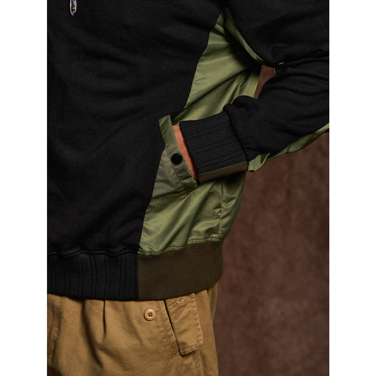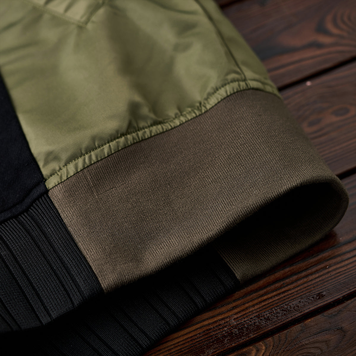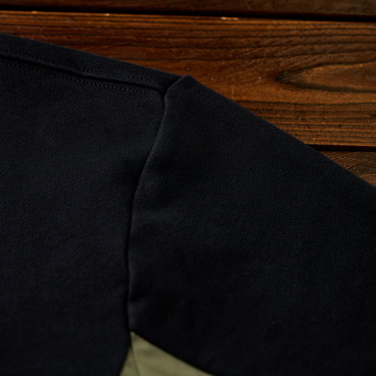 나일론 배색 소매 셔링 처리 풀오버 스웨트셔츠