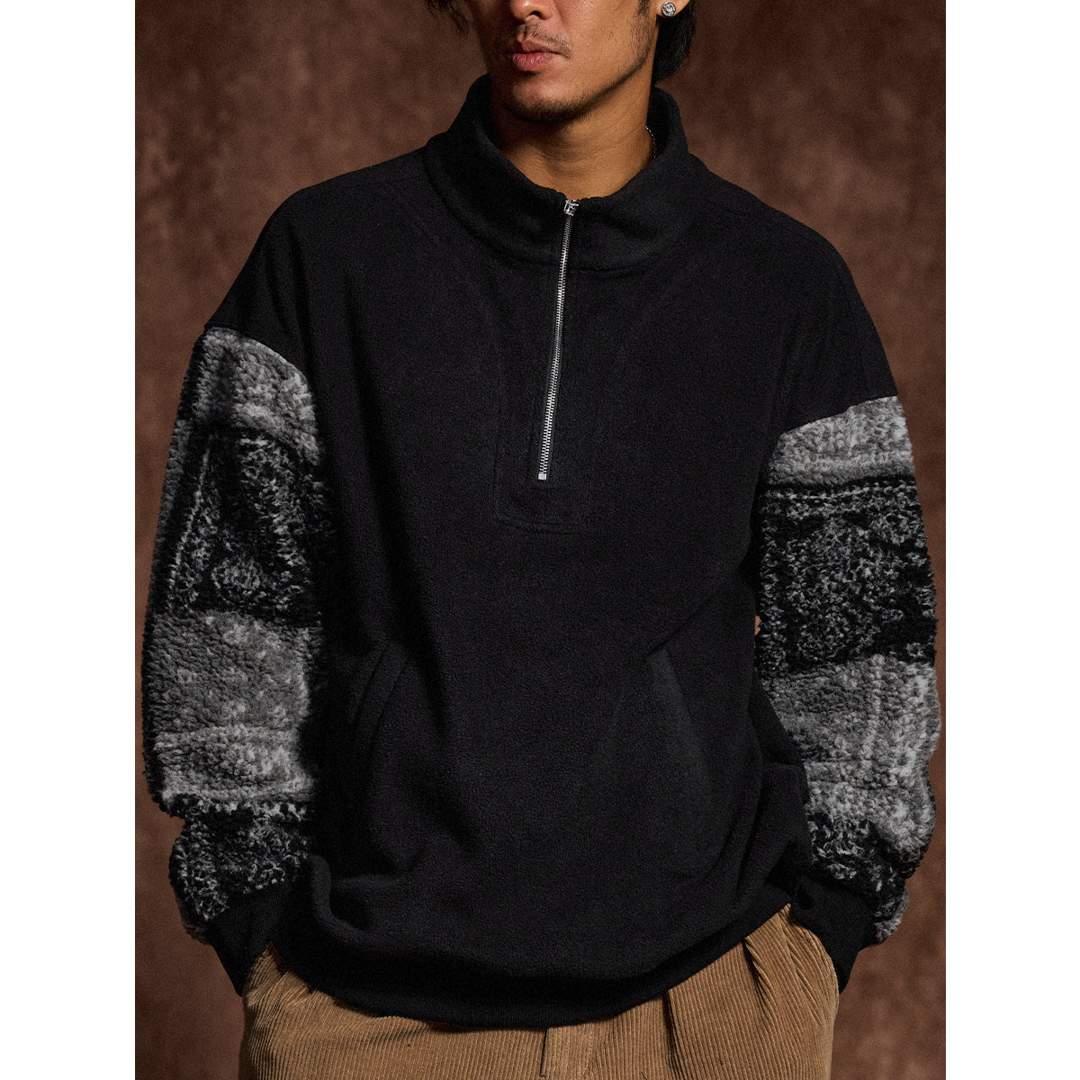 에스닉 자카드 직조 콤비 하프 지퍼 폴라 플리스 스웨트