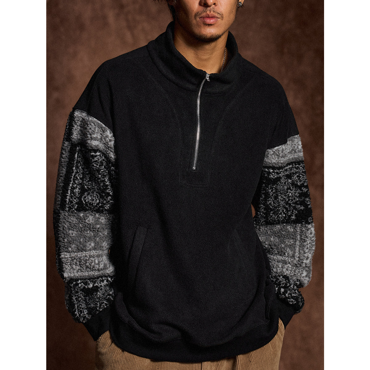 【사전예약】소매 페이즐리 보아 배색 양면 기모 하프집 플리스 스웨트셔츠