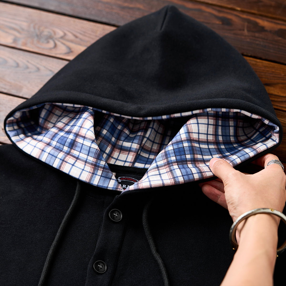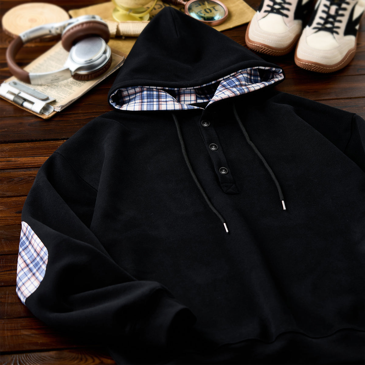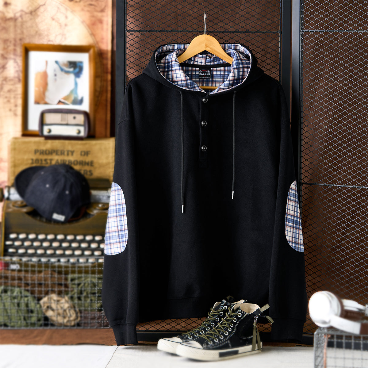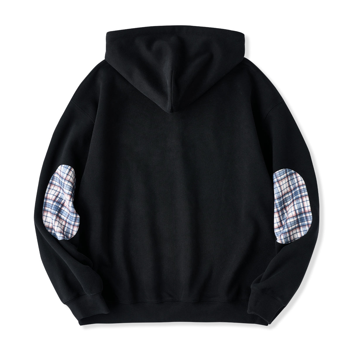 【사전예약】팔꿈치 체크 패치 & 안감 체크 하프 버튼 후드티