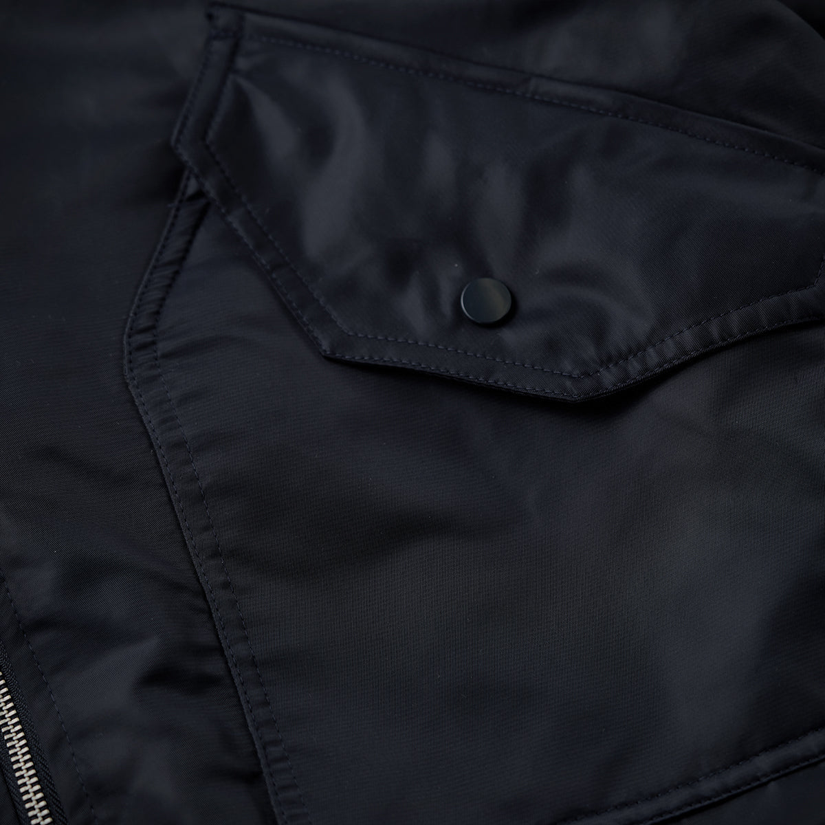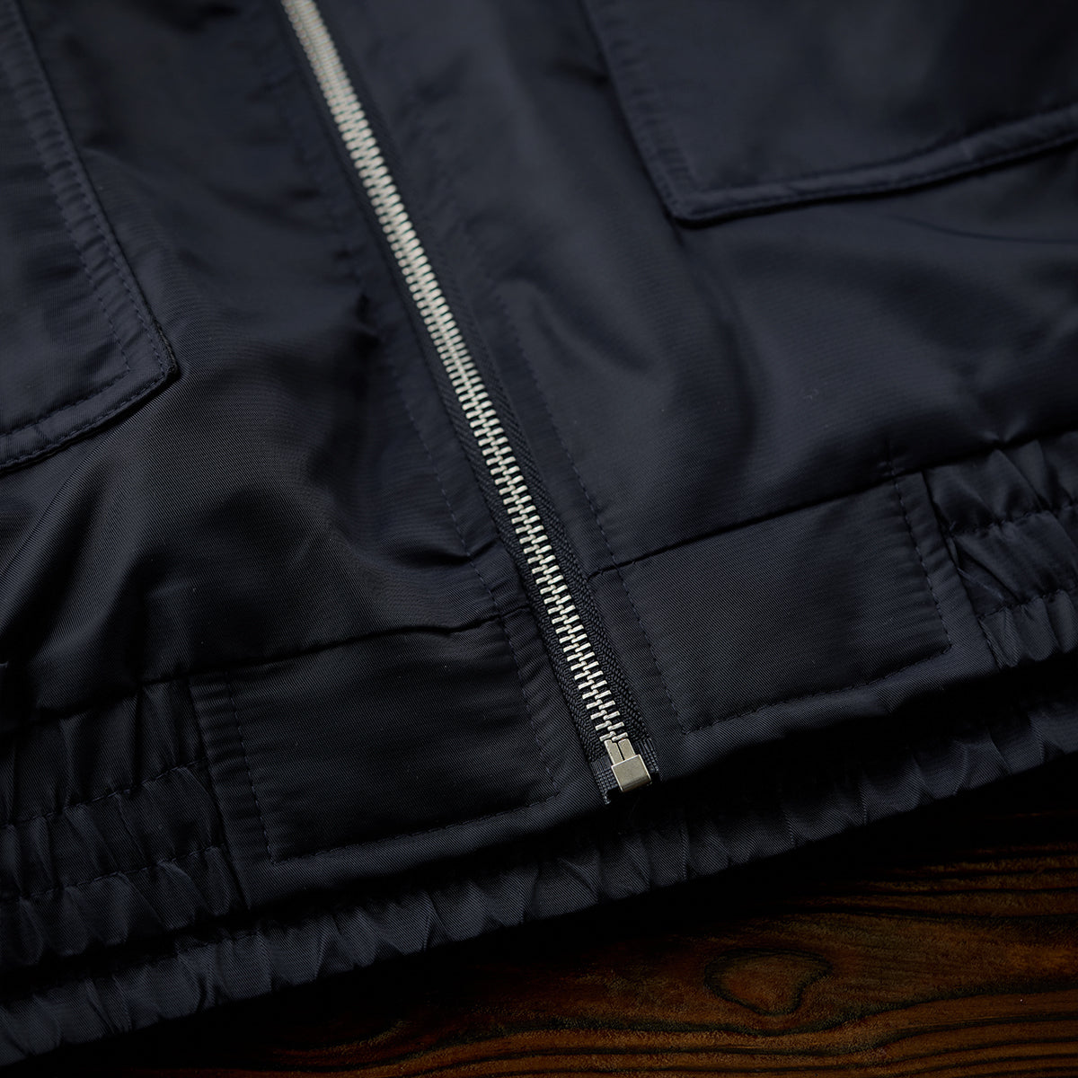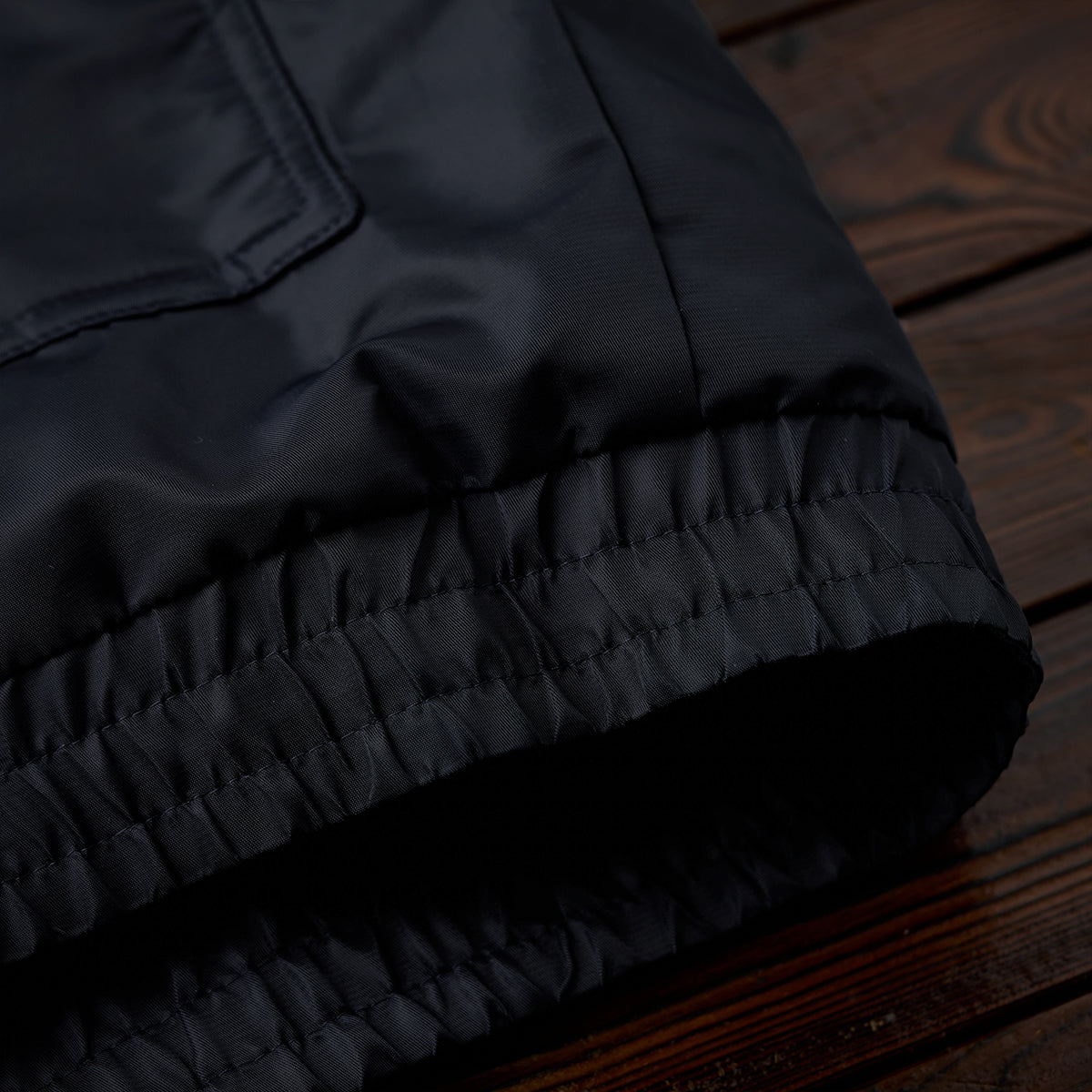 겉감은 광택이 나는 나일론 소재로 고급스러우며, 내구성이 뛰어나 마모와 찢김에 강해 오래 사용할 수 있습니다. 방풍성을 갖추어 가을·겨울 아우터로 적합합니다.