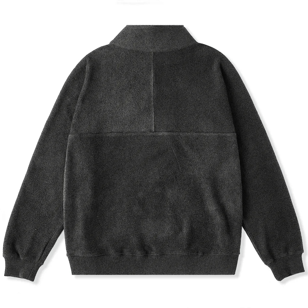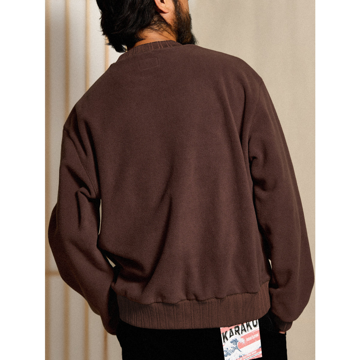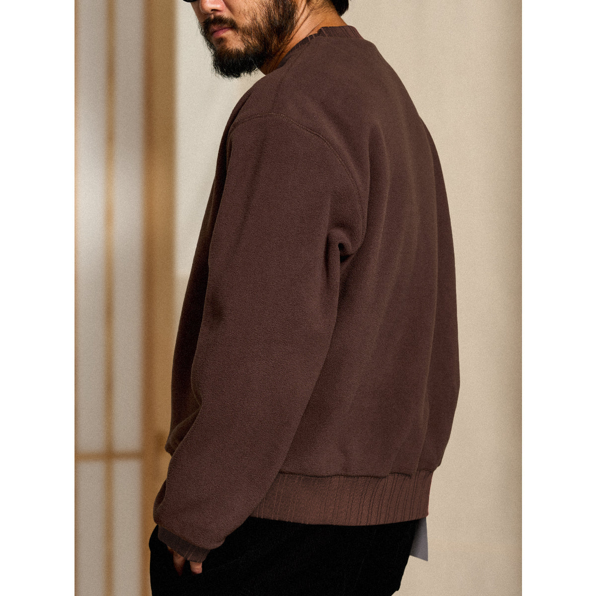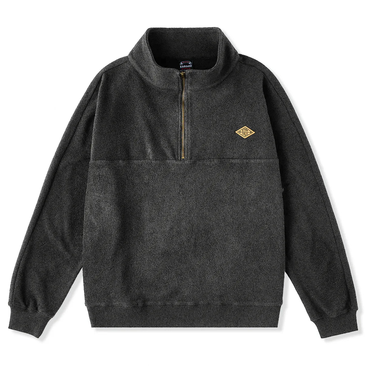 「KaraKu」자수 디테일 양면 기모 플리스 헨리넥 스웨트