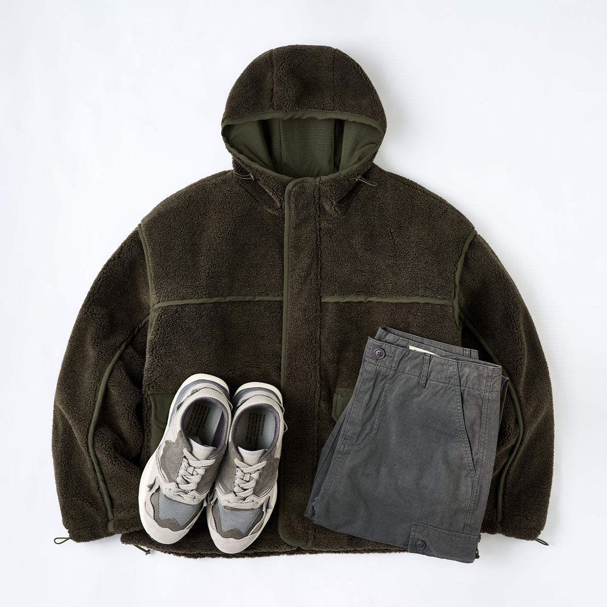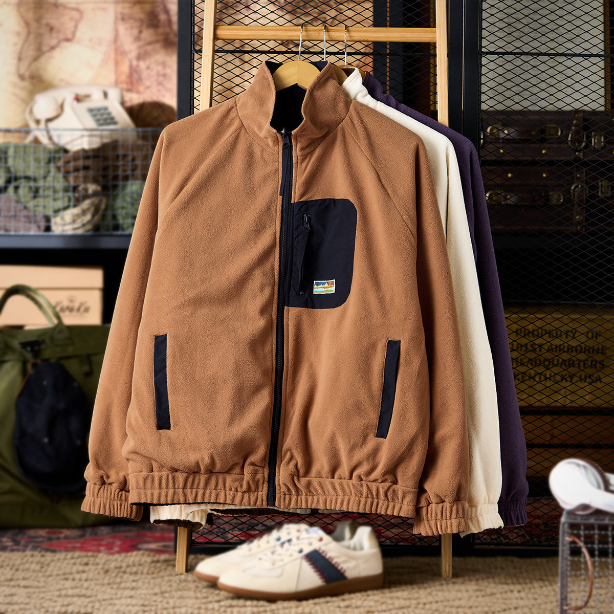 무지&폴러 플리스 리버서블 스탠드칼라 래글런 슬리브 자켓