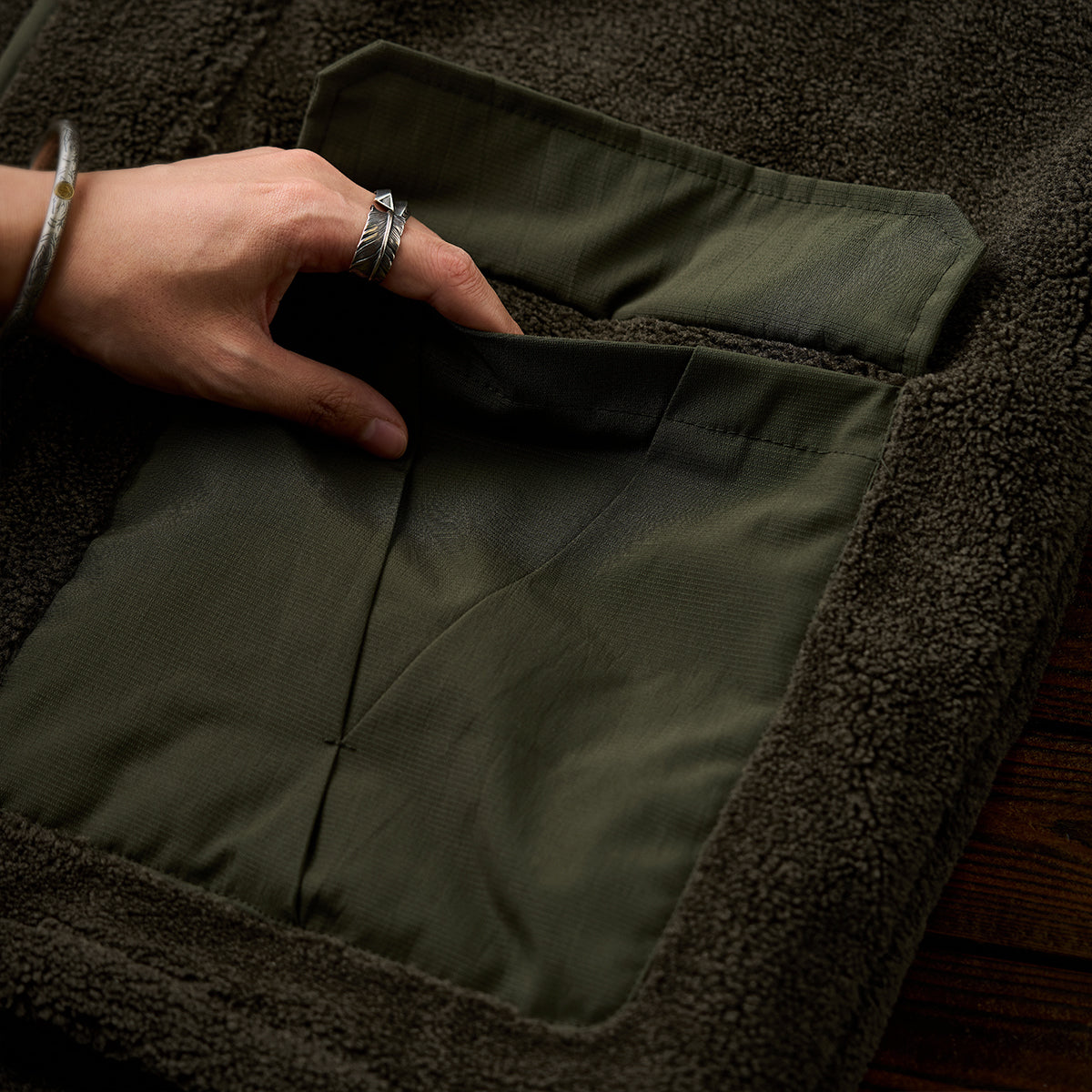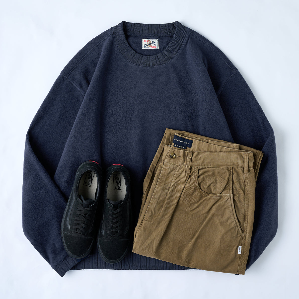【사전예약】「STAY TRUE」자수 와펜 · 언밸런스 나일론 패치 포켓 플리스 스웨트